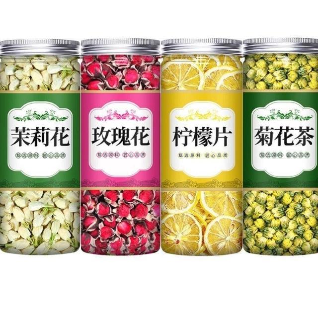 文文優選女神四花茉莉花金邊玫瑰胎菊花檸檬罐裝組合泡茶泡水山楂玫瑰花