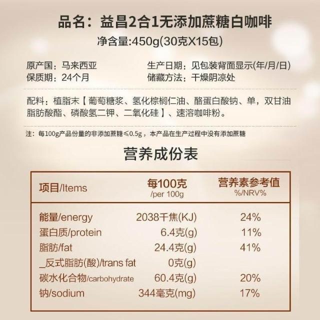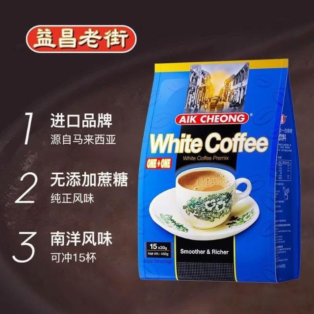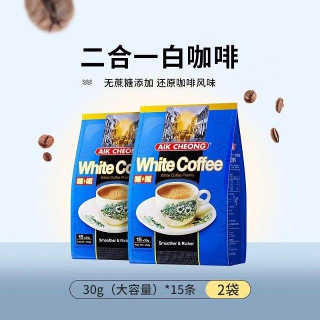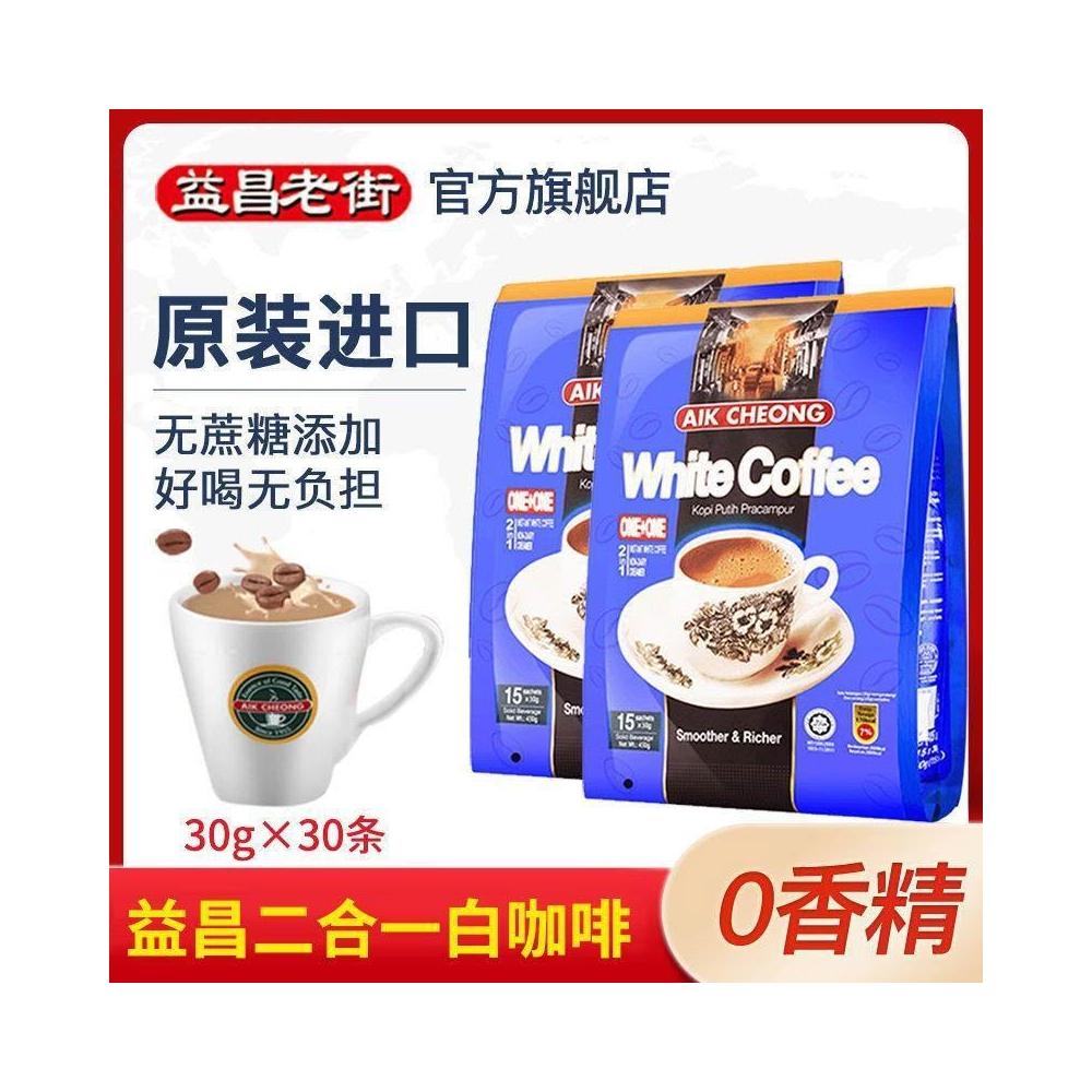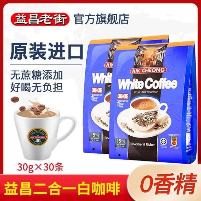 文文優選益昌老街咖啡二合一無蔗糖白咖啡450g*2袋速溶提神醒腦原裝進口