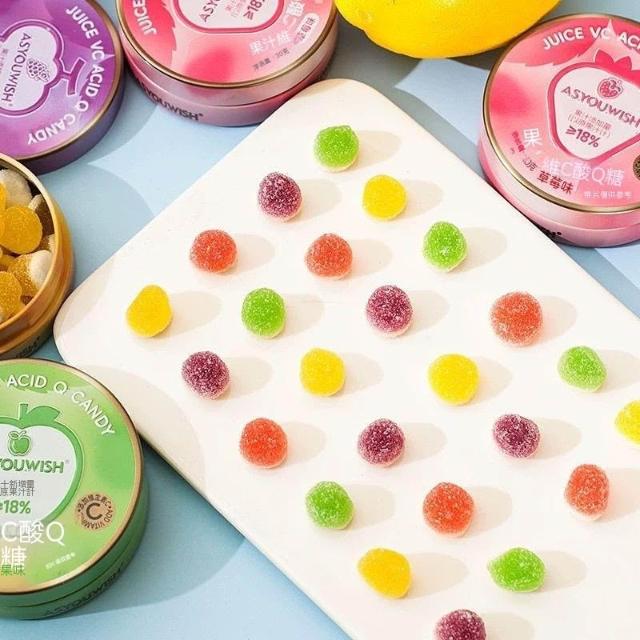 文文優選維c果汁酸Q糖鐵盒裝葡萄味檸檬軟糖方便隨身攜帶軟砂糖零食批發