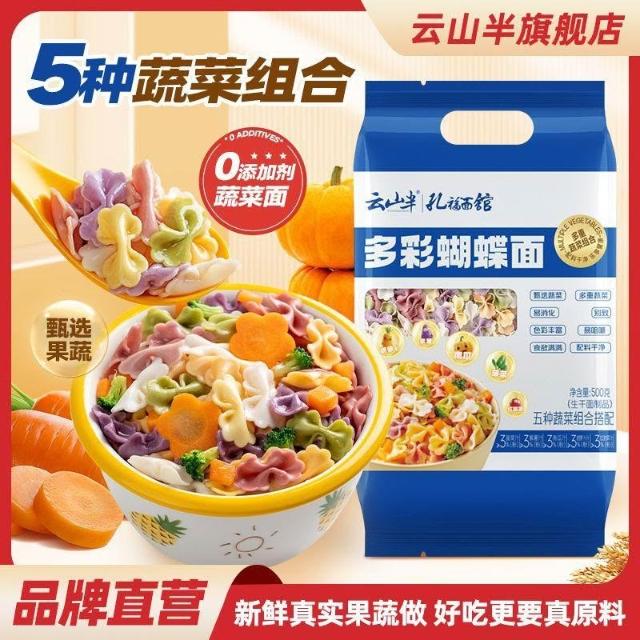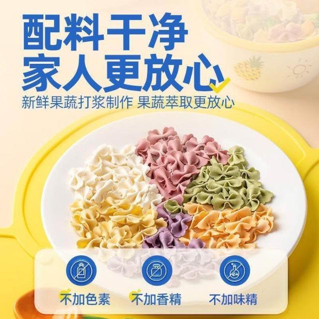 文文優選雲山半0添加劑多彩蝴蝶面5種果蔬面兒童營養蝴蝶麪條早餐五彩掛麪