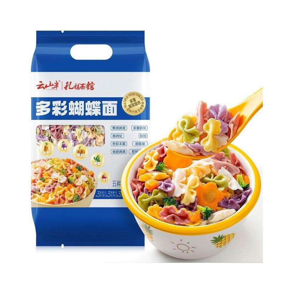 文文優選雲山半0添加劑多彩蝴蝶面5種果蔬面兒童營養蝴蝶麪條早餐五彩掛麪