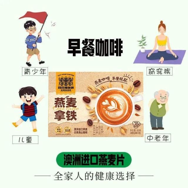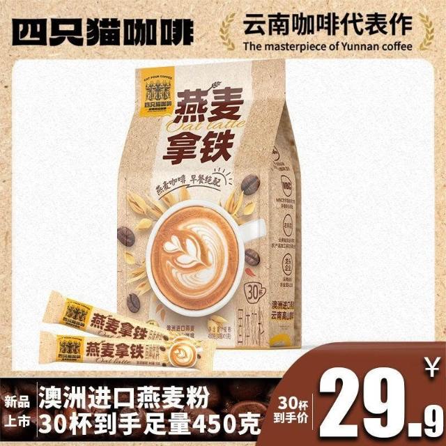 文文優選首單直降】燕麥/生椰拿鐵咖啡 四隻貓咖啡 三合一 速溶咖啡 早餐