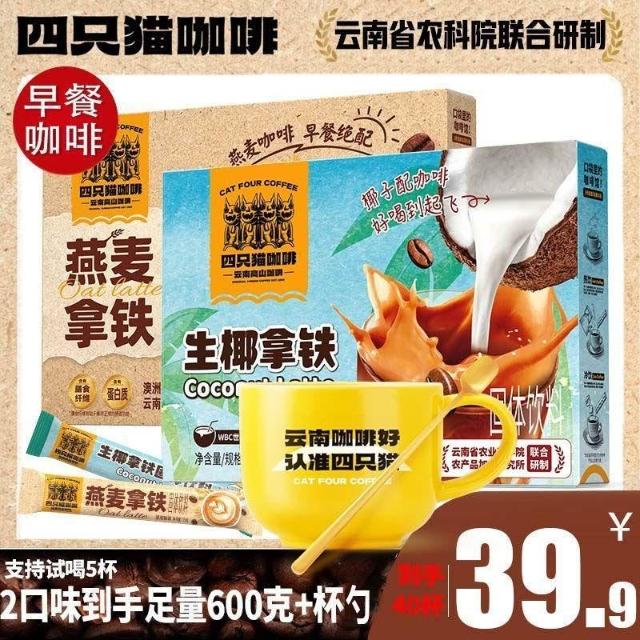 文文優選首單直降】燕麥/生椰拿鐵咖啡 四隻貓咖啡 三合一 速溶咖啡 早餐