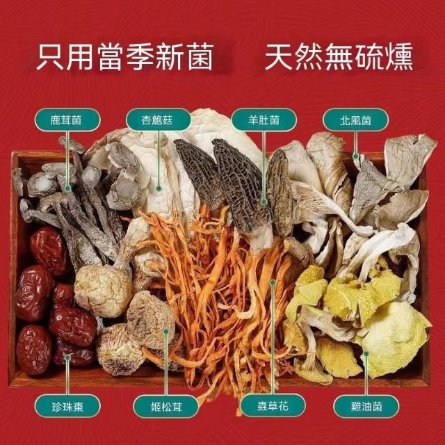 文文優選七彩菌湯包菌菇類乾貨火鍋食材羊肚菌蟲草花滋補冬季煲湯健康營養