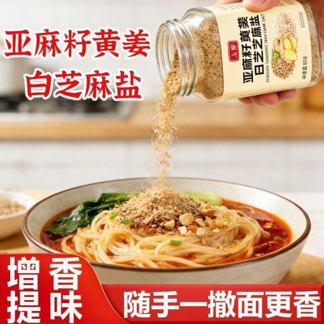 文文優選亞麻籽薑黃白芝麻鹽瓶裝輕食水煮菜拌麪調味料黑芝麻早餐西餐調料