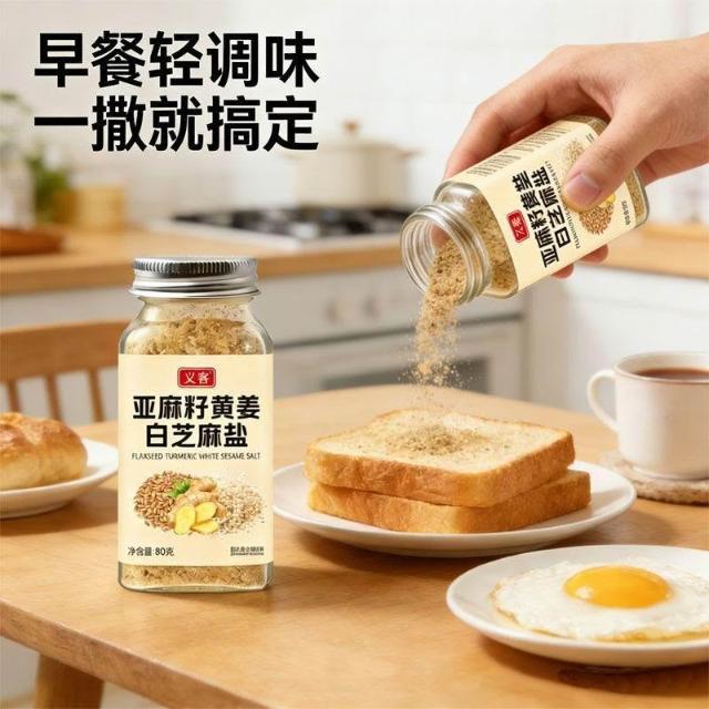 文文優選亞麻籽薑黃白芝麻鹽瓶裝輕食水煮菜拌麪調味料黑芝麻早餐西餐調料