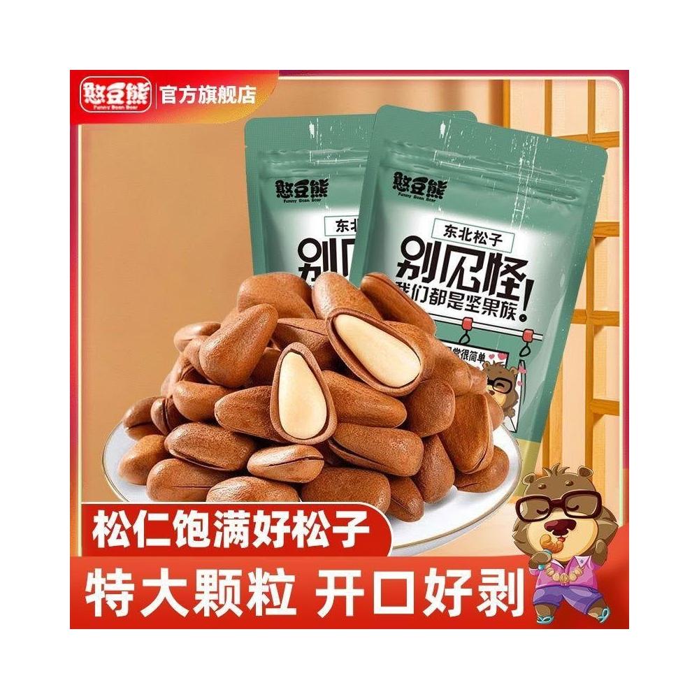 文文優選憨豆熊特大東北松子250g淨重開口東北手剝松子原味大顆粒孕婦堅果