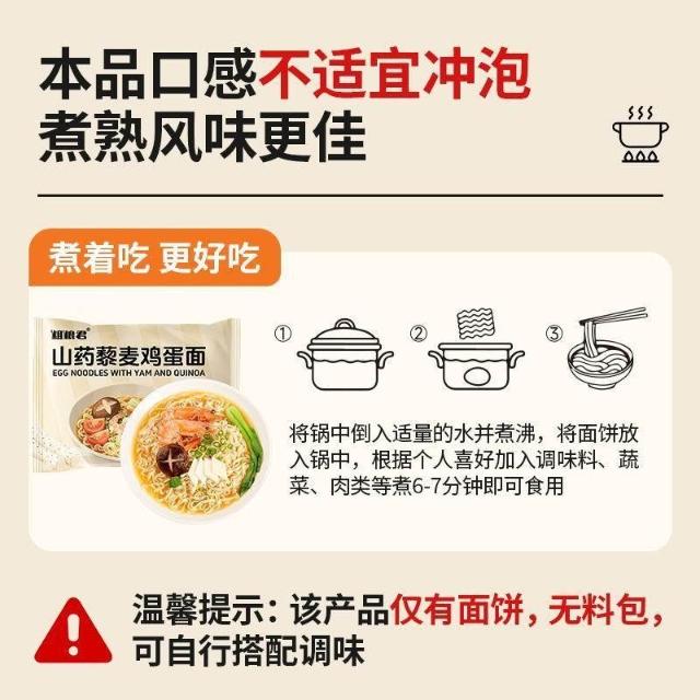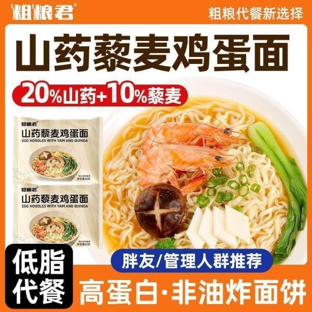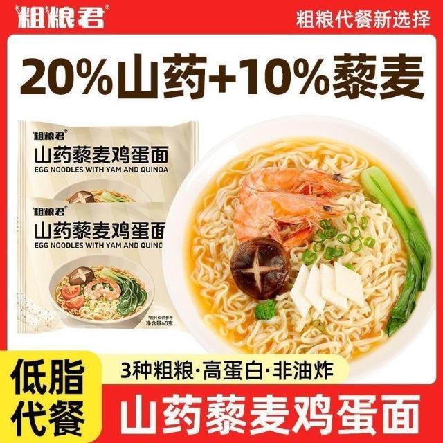 文文優選粗糧君減低脂山藥藜麥雞蛋麪60克全麥粗糧麪條整箱非油炸輕食早餐