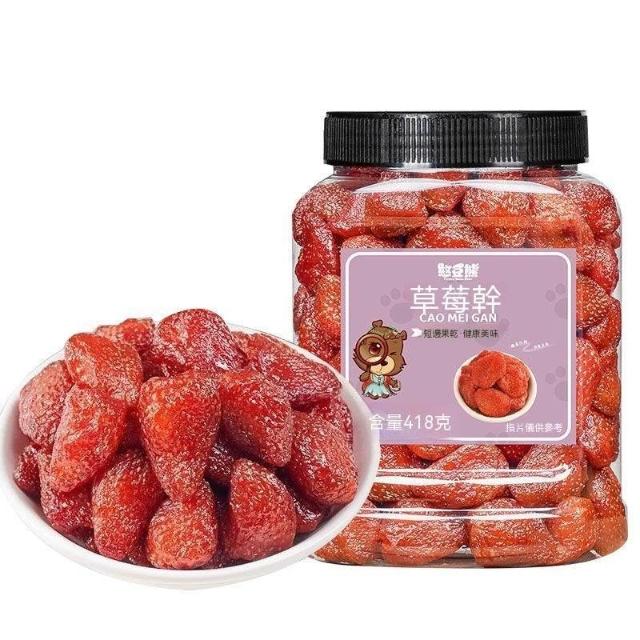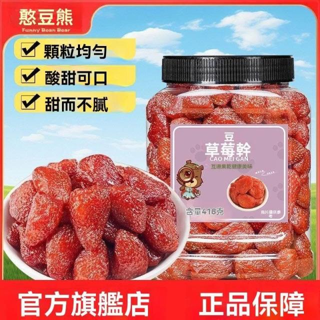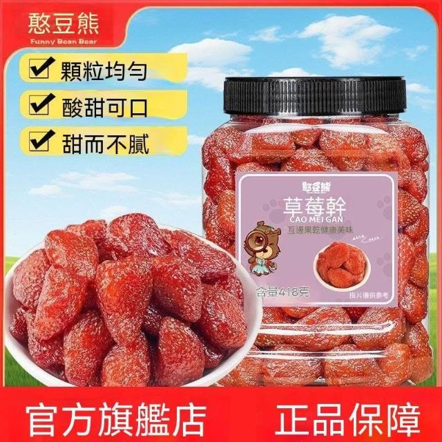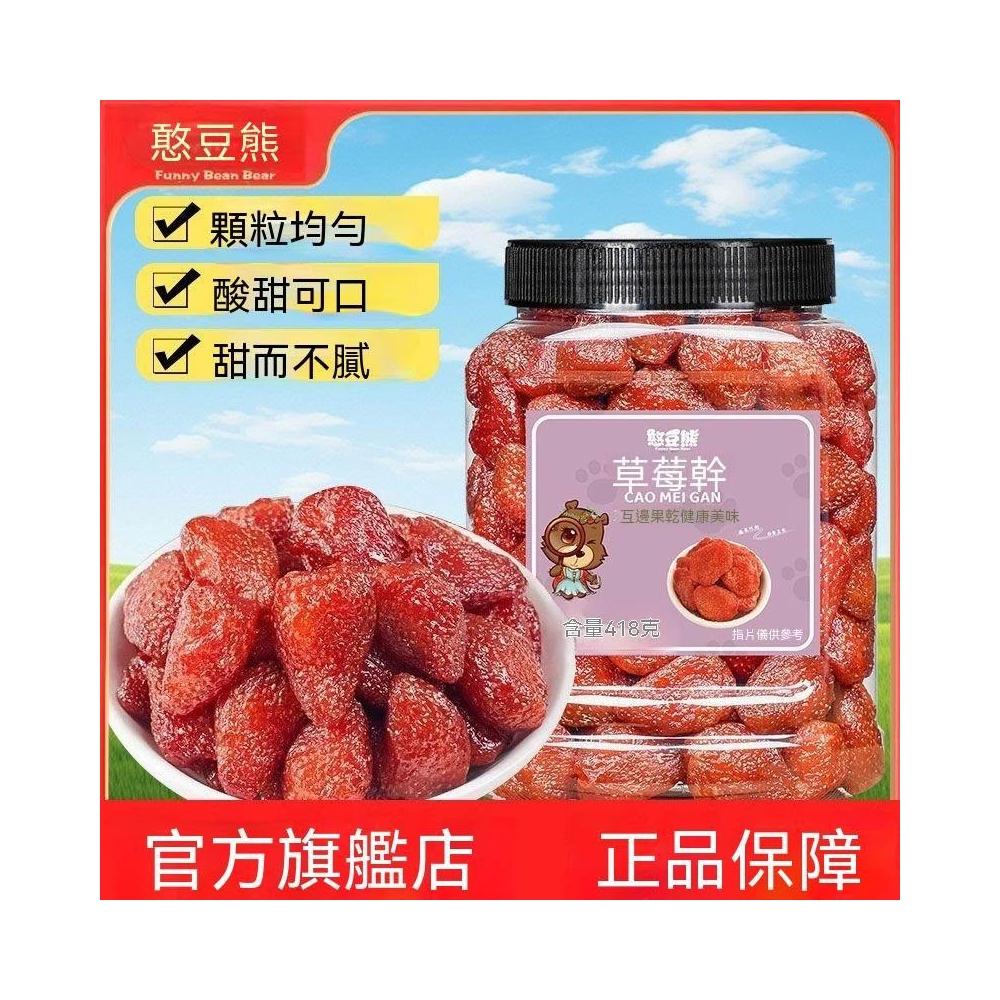 文文優選憨豆熊草莓幹418g/罐果脯果乾酸甜蜜餞烘焙零食辦公室解饞小吃