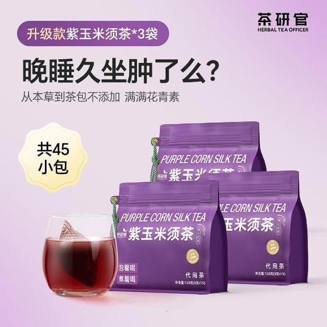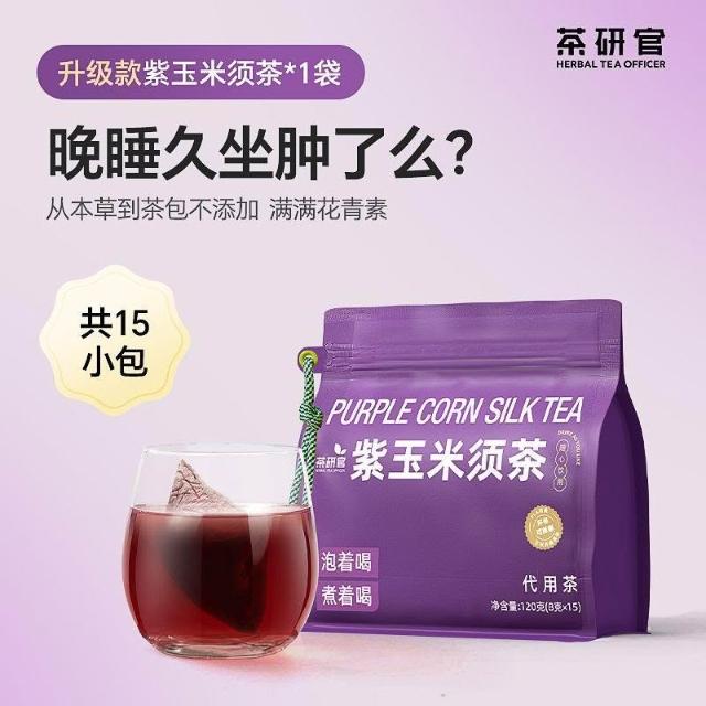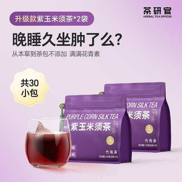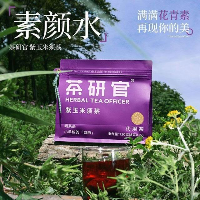单单茶研官紫玉米鬚茶花青素熬夜女性茶玉米鬚茶黑米黑枸杞桑葚茶