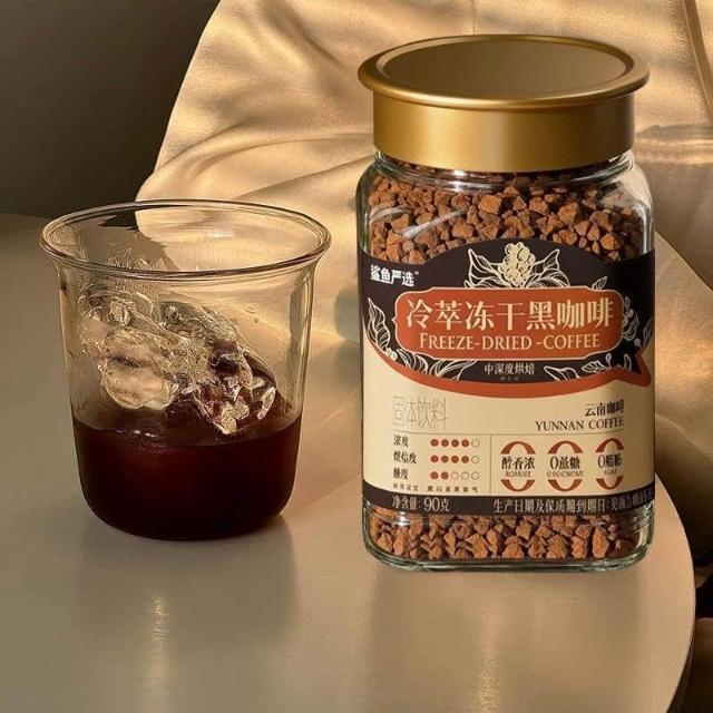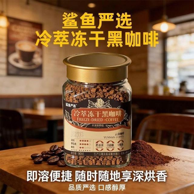 单单優選鯊魚嚴選正品雲南冷萃凍幹黑咖啡速溶美式400次咖啡0蔗糖0脂肪