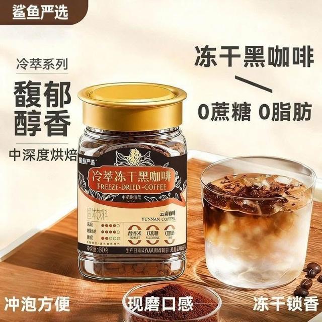 单单優選鯊魚嚴選正品雲南冷萃凍幹黑咖啡速溶美式400次咖啡0蔗糖0脂肪