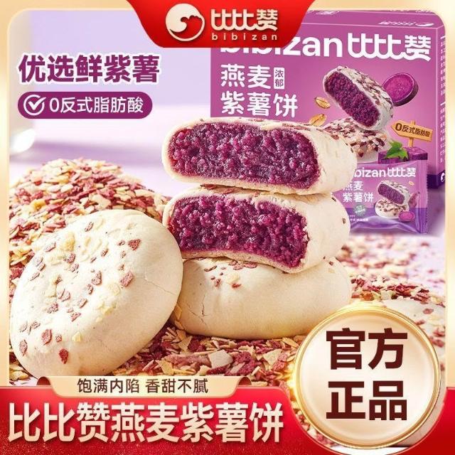 單單優選比比贊燕麥紫薯餅傳統早餐夾心酥下午茶麪包代餐糕點休閒小吃240g