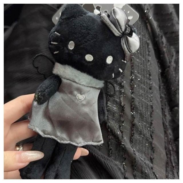 SANRIO 三麗鷗現貨 日本代購 Hello Kitty 長腿 天使 三麗鷗 全黑 黑灰 黑皮 凱蒂貓 小香風 限定