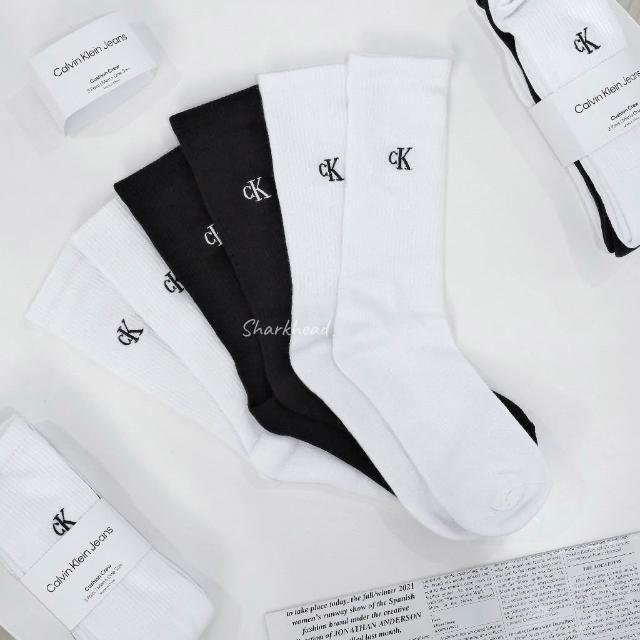 CALVIN KLEIN現貨 Calvin Klein 長襪 小腿襪 黑 白色 小標 刺繡 坑條 基本款 素色 襪子 CK