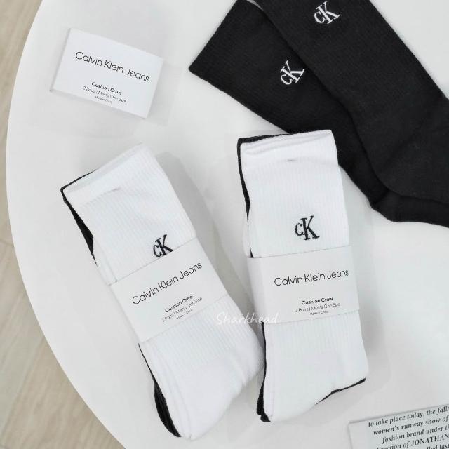 CALVIN KLEIN現貨 Calvin Klein 長襪 小腿襪 黑 白色 小標 刺繡 坑條 基本款 素色 襪子 CK