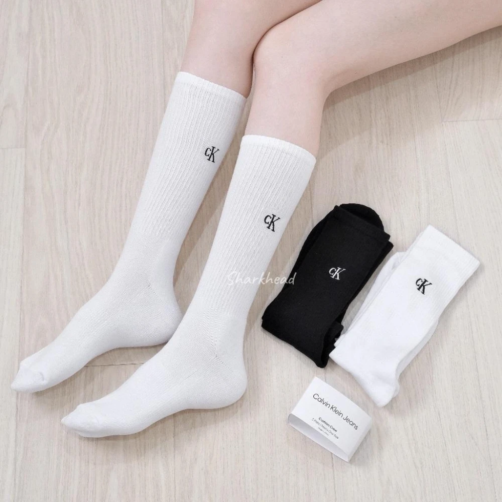 CALVIN KLEIN現貨 Calvin Klein 長襪 小腿襪 黑 白色 小標 刺繡 坑條 基本款 素色 襪子 CK