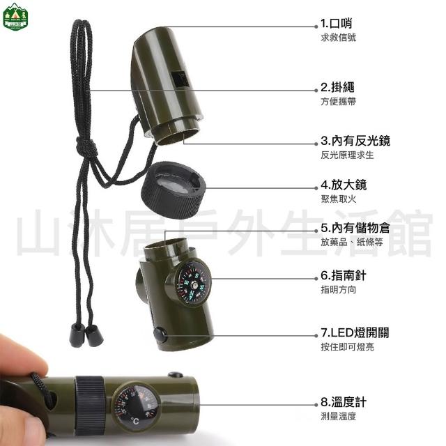 台灣現貨+發票✨登山露營七合一多功能求生口哨、高分貝口哨、便攜隨身掛口哨、戶外必備哨子、多種功能合一口哨~