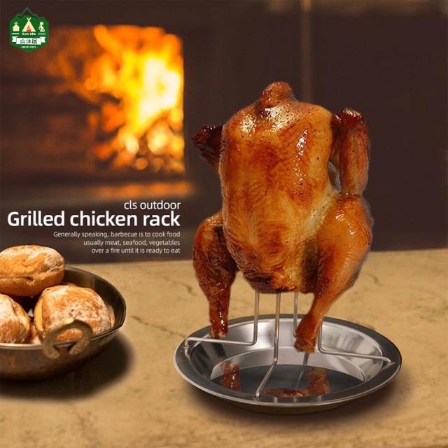 台灣現貨+發票✨露營不銹鋼燒烤帶架烤雞盤、簡易甕窯雞架、燒烤雞盤、烤雞架