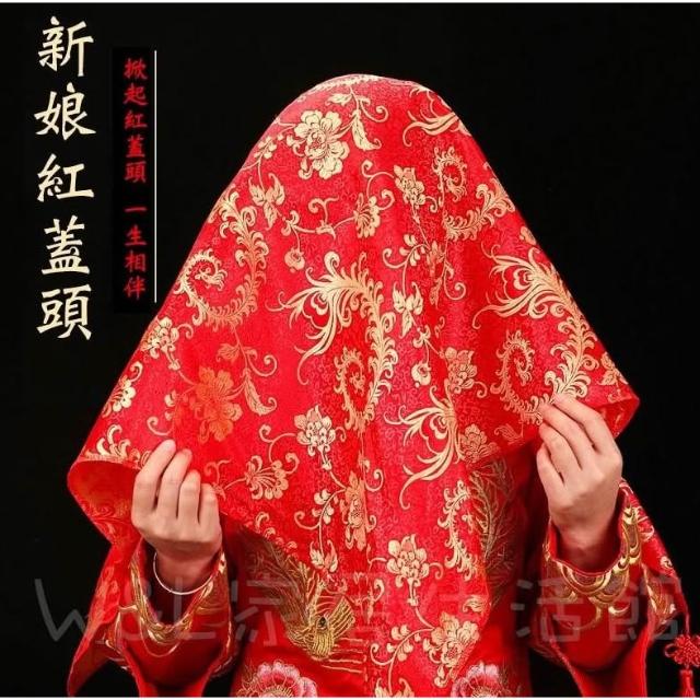 台灣現貨📣結婚中式龍鳳紋吊墜頭紗、婚禮大紅蓋頭、婚禮新娘頭紗
