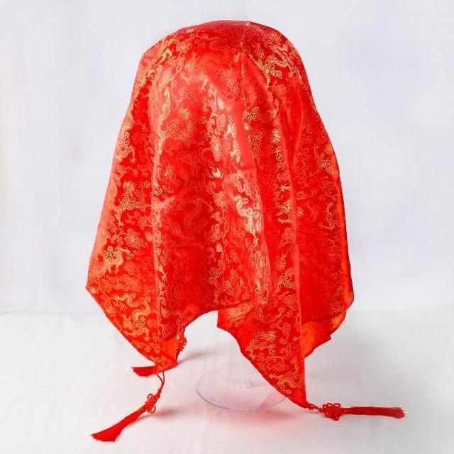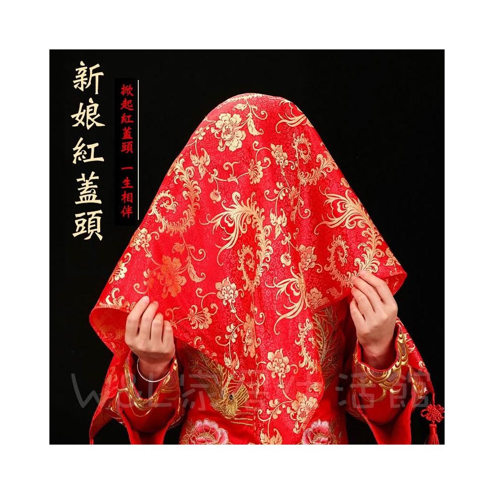 台灣現貨📣結婚中式龍鳳紋吊墜頭紗、婚禮大紅蓋頭、婚禮新娘頭紗
