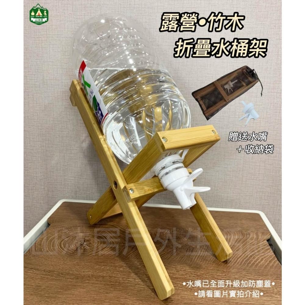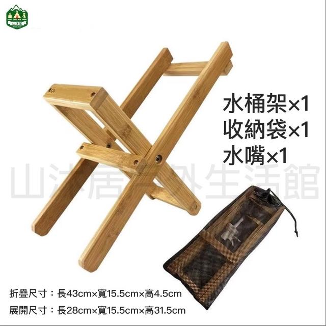 台灣現貨+發票✨户外露營竹製水桶支架全配、竹製水架、便攜式簡易飲水台、倒置飲水器、水嘴大水桶架、野營野餐水桶架