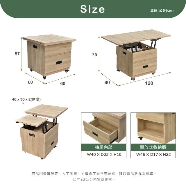SW 左鄰右舍匠木 MIT免組裝 移動式機能氣壓 附輪方形升降茶几