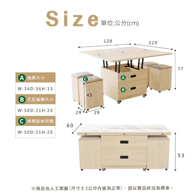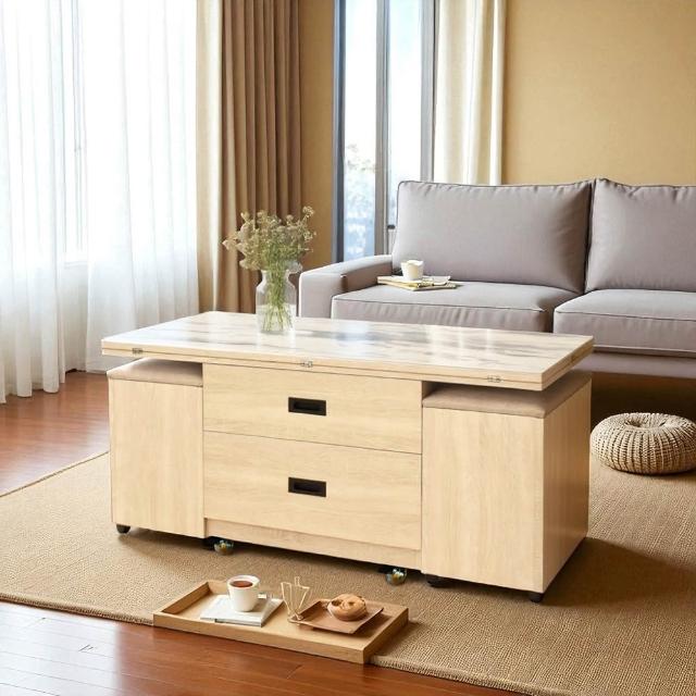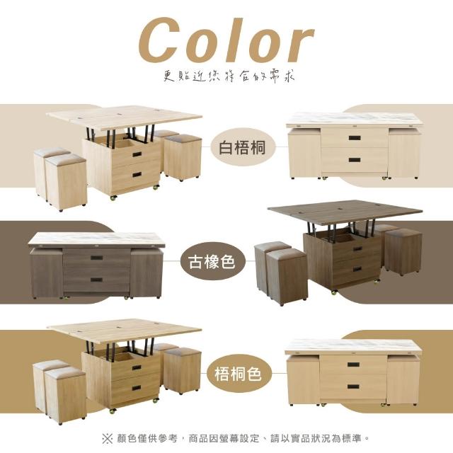 SW 左鄰右舍台灣製 岩板+萬向輪 1桌4椅緩衝款升降茶几 木心板工作桌 餐桌 變形金剛