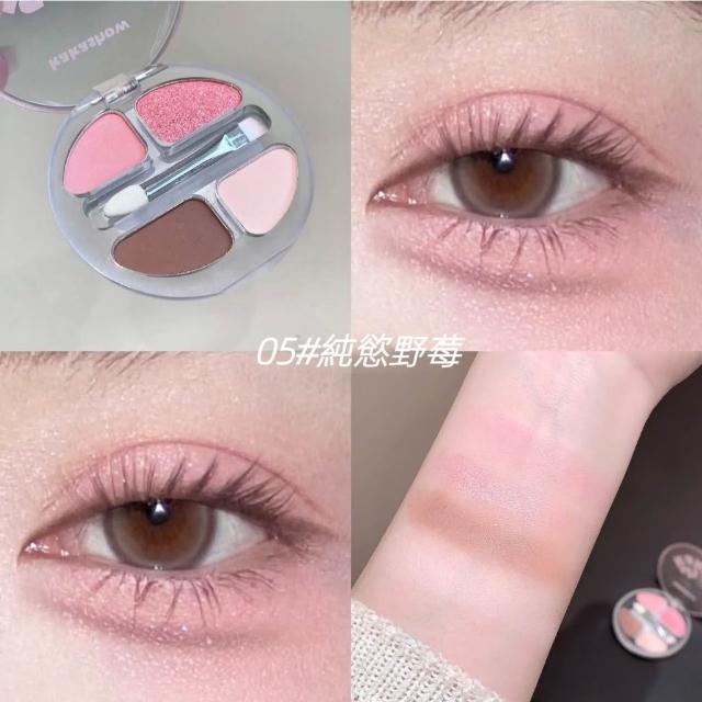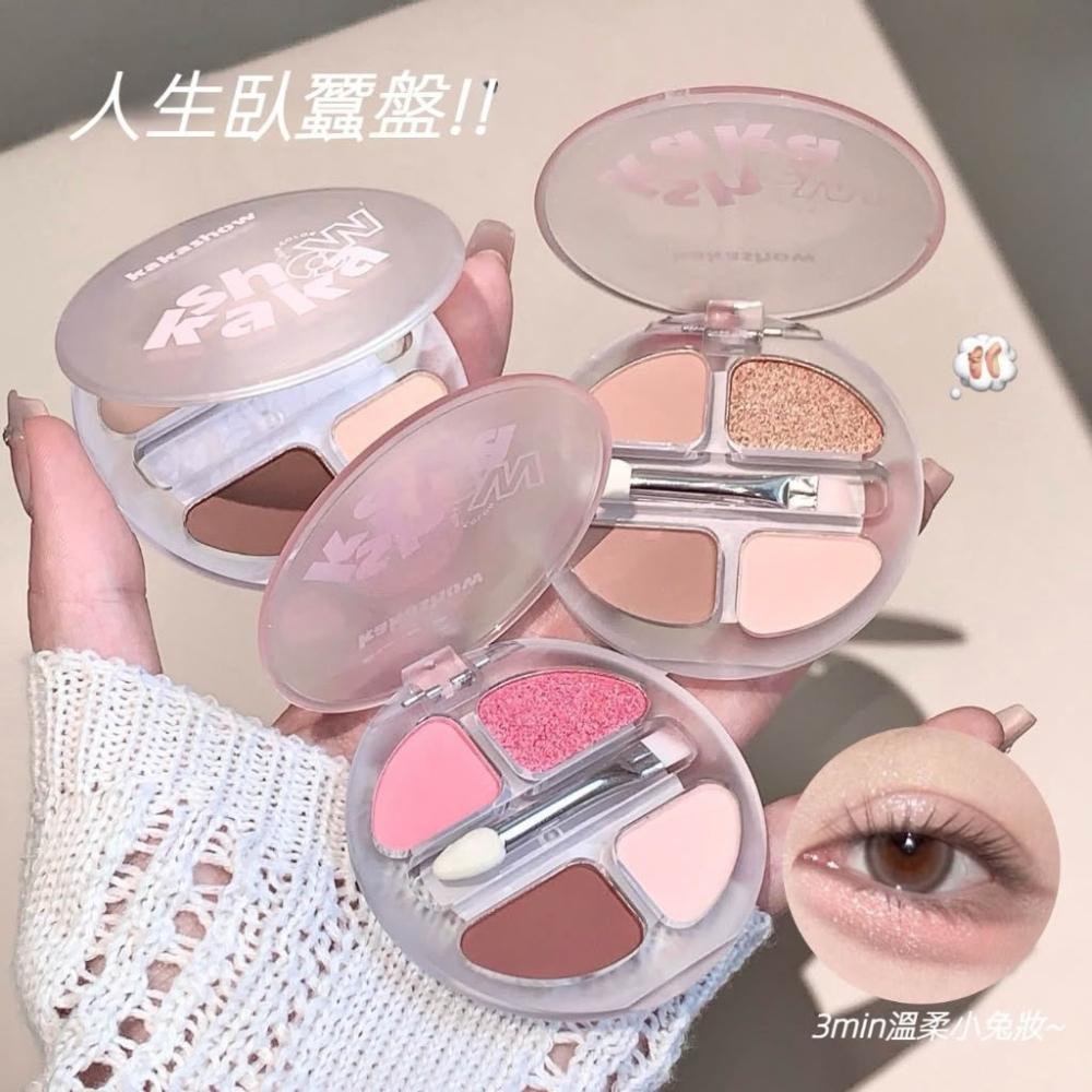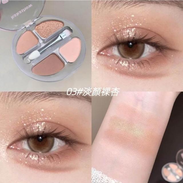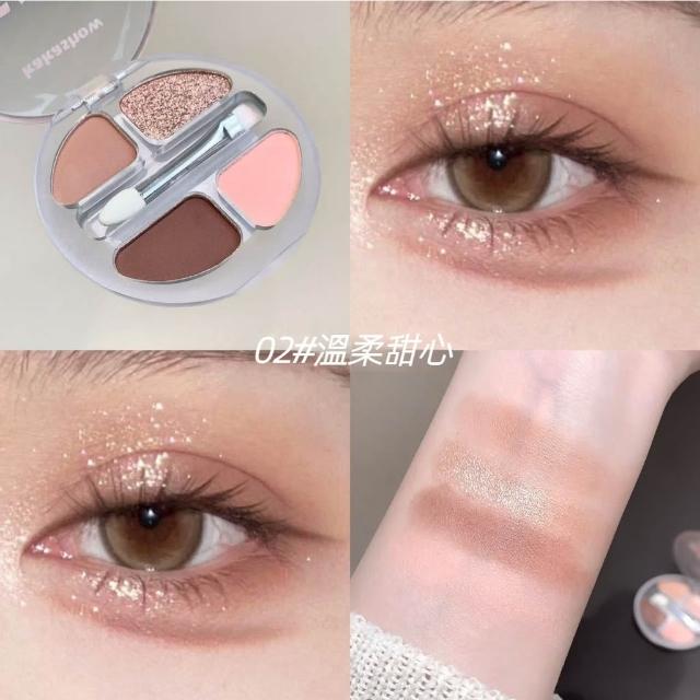kakashow 靈動四色臥蠶盤 啞光 閃粉 自然 立體 提亮綜合盤 帶雙頭刷 眼影