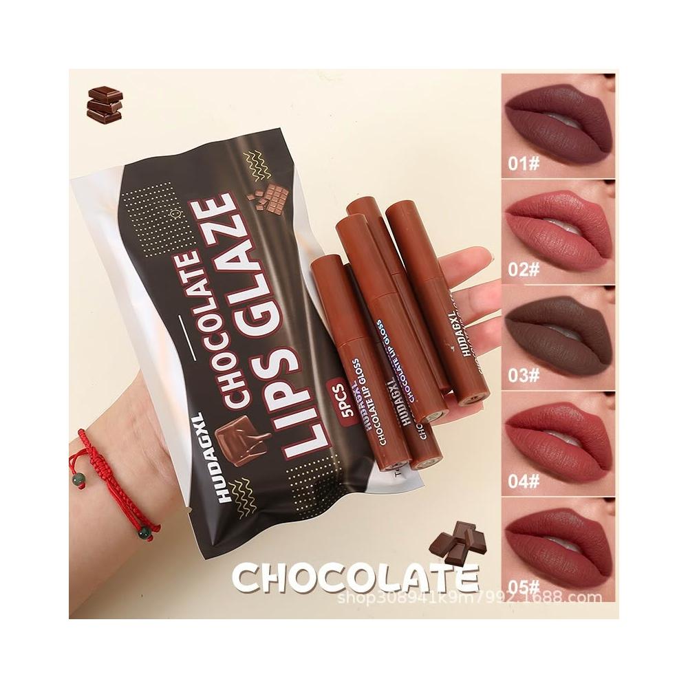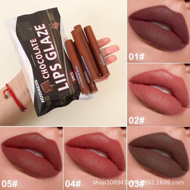 跨境化妆品巧克力套装唇彩唇釉 含五支哑光口红 不沾杯不掉色持妆久 唇部彩妆一站式配齐 日常 / 约会 / 通勤都适配 跨