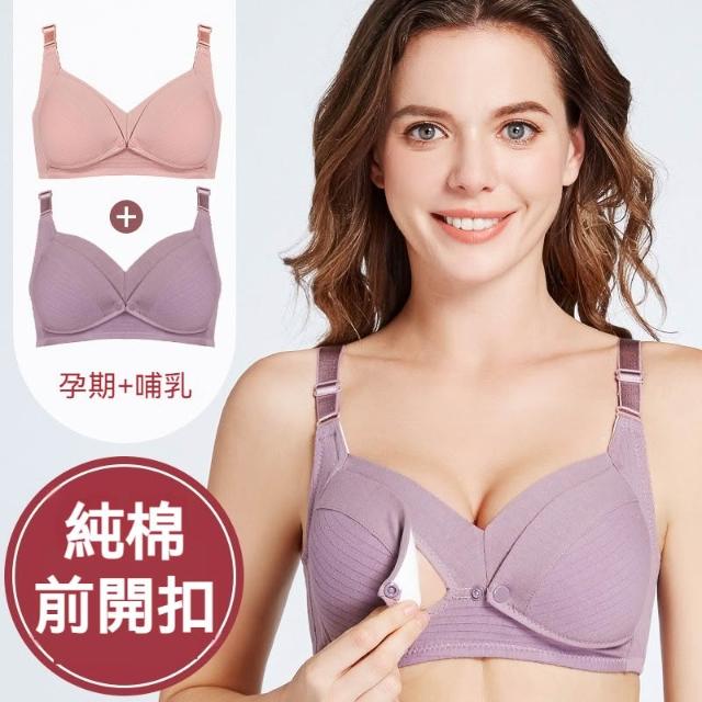 前扣無鋼圈內衣 哺乳內衣 純棉 聚攏防下垂 哺乳美背側收副乳 懷孕期孕婦文胸 產後餵奶衣 春夏薄 大碼前開 內衣