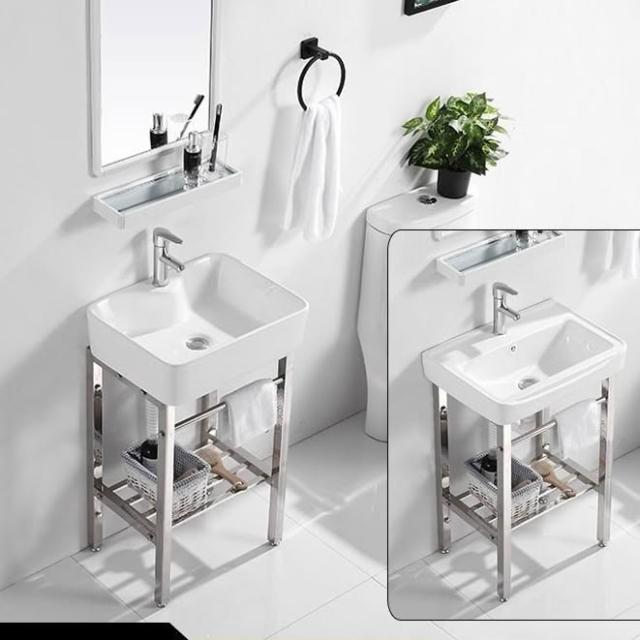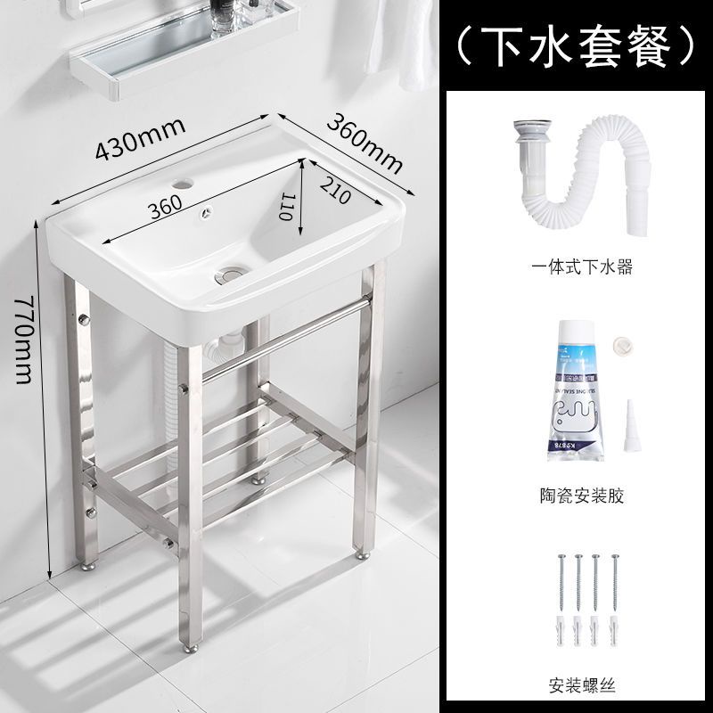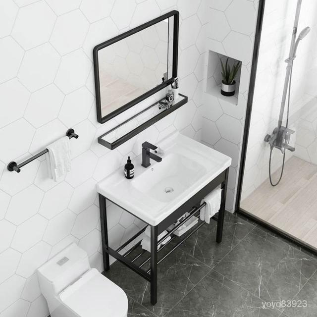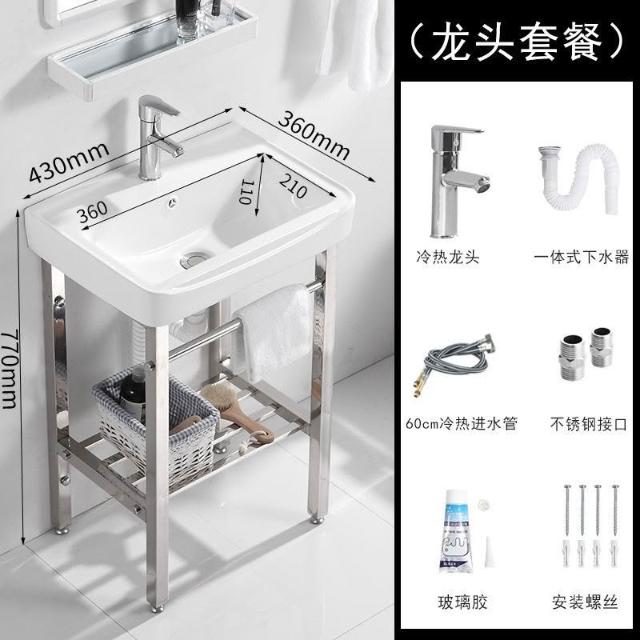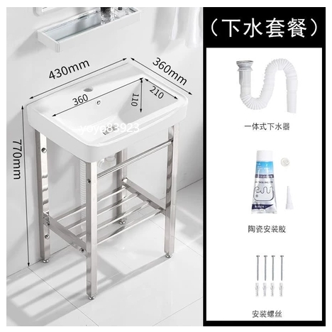 🌲未晚家具舘🌲小戶型落地式陶瓷洗臉盆洗手盆衛生間不銹鋼支架戶外陽臺一體臺盆 洗手池 洗手槽 水槽 陶瓷洗臉池