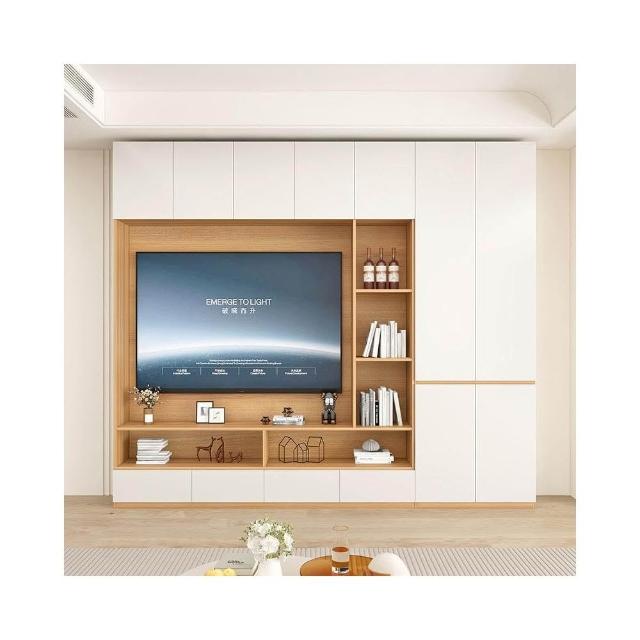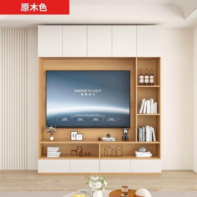 客廳電視櫃背景墻現代簡約墻櫃一體組閤櫃實木收納儲物櫃家用定製 QIP3