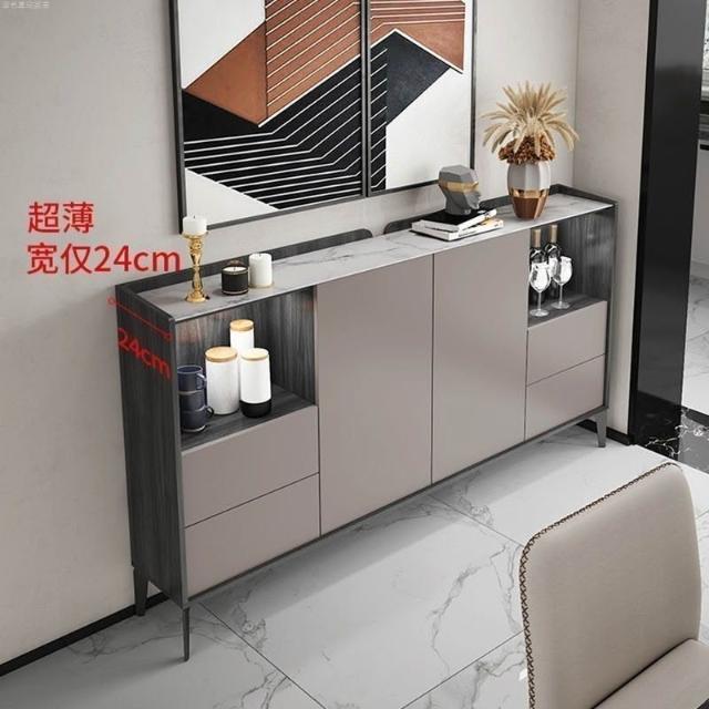 可訂製意式現代輕奢巖闆餐邊櫃酒櫃靠墻電視櫃儲物櫃子廚房小戶型薄櫃 J90F