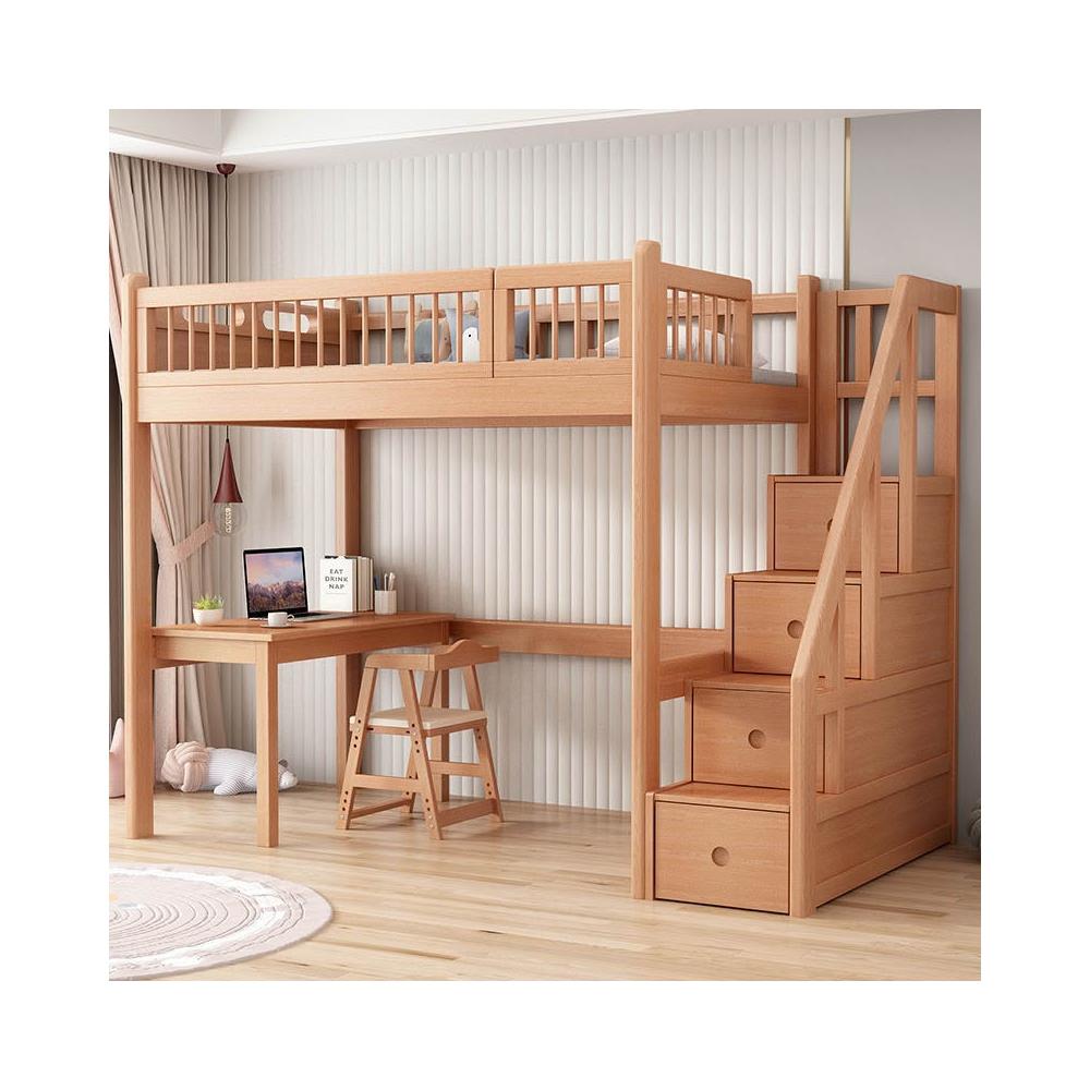 未晚家具舘⭐️上床下桌多功能家用大人櫸木高架床全實木床書桌一體小戶型