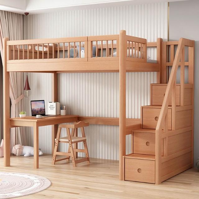 未晚家具舘⭐️上床下桌多功能家用大人櫸木高架床全實木床書桌一體小戶型