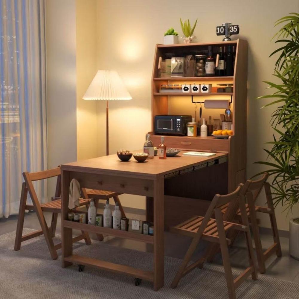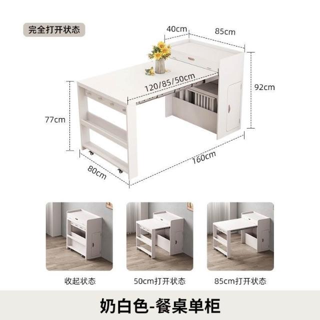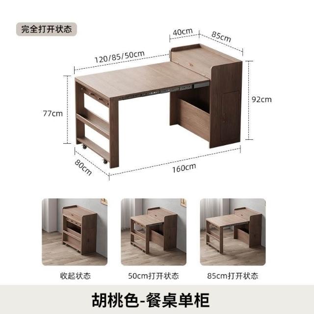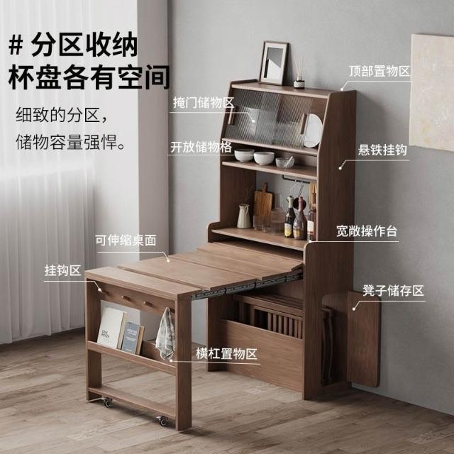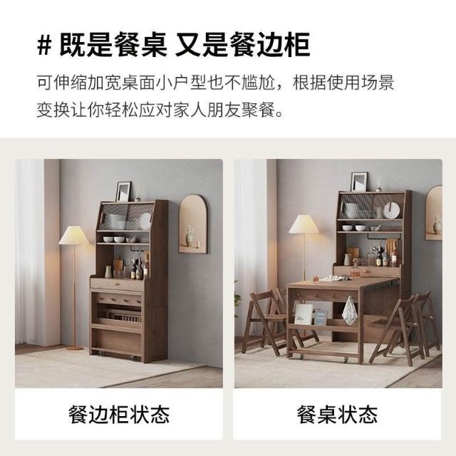 未晚家具舘 尚馨閣實木餐桌折疊伸縮家用小戶型隱藏式餐桌邊櫃一體多功能桌