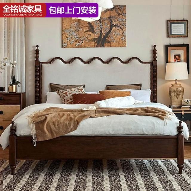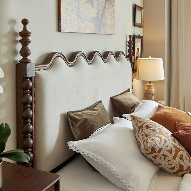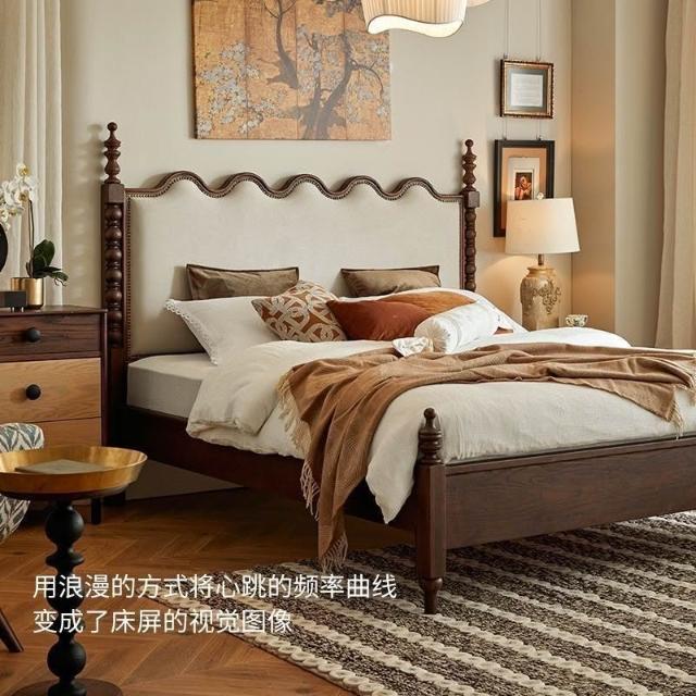 未晚家具舘 法式複古實木床羅馬柱中古風白臘木美式輕奢主臥大床真皮雙人婚床