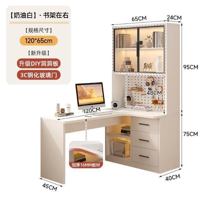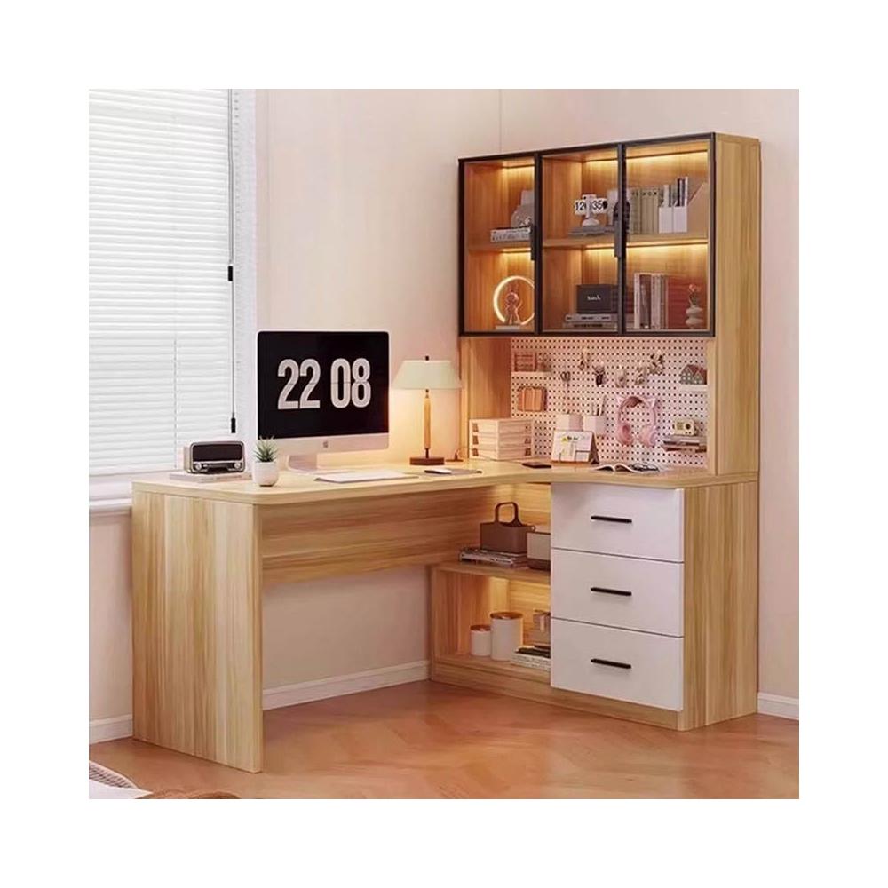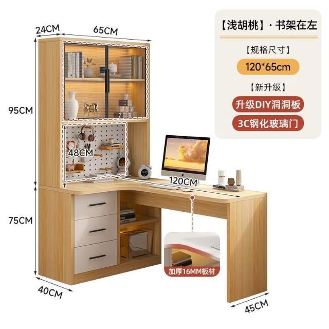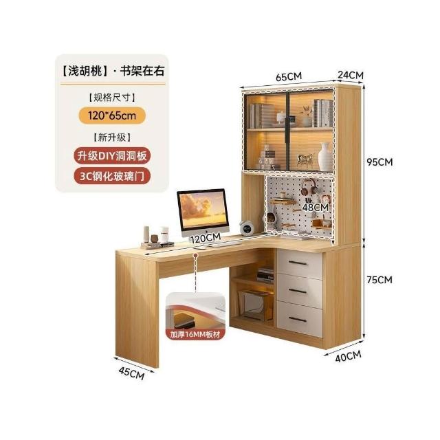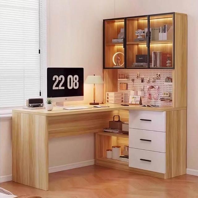 轉角實木書桌書架一體簡易書櫃學生臥室家用辦公寫字電腦桌桌子