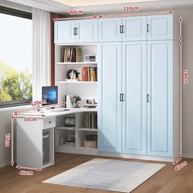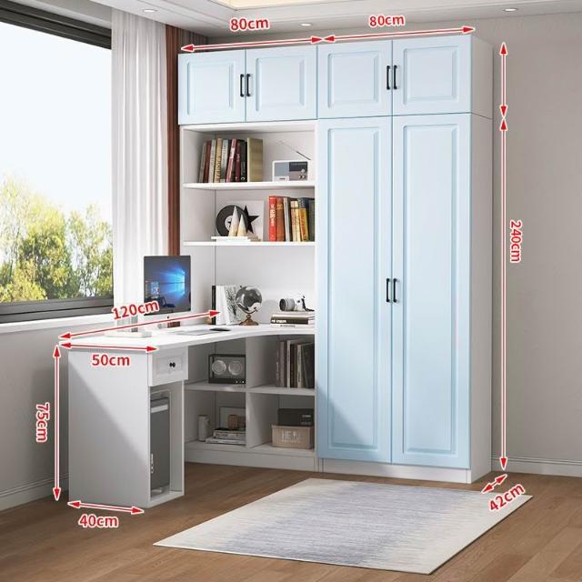 ❤️ 實木衣櫃書桌一體組合家用簡約轉角學生電腦桌臥室衣櫥連體書櫃