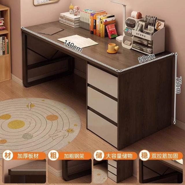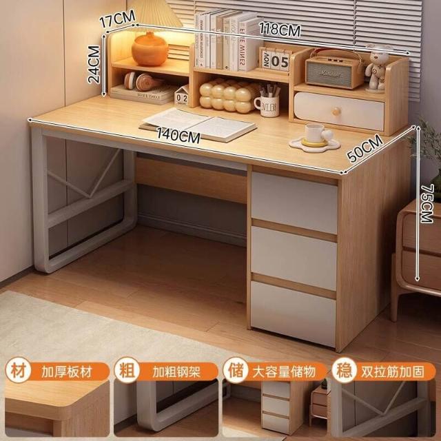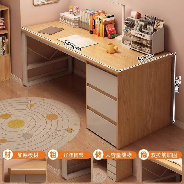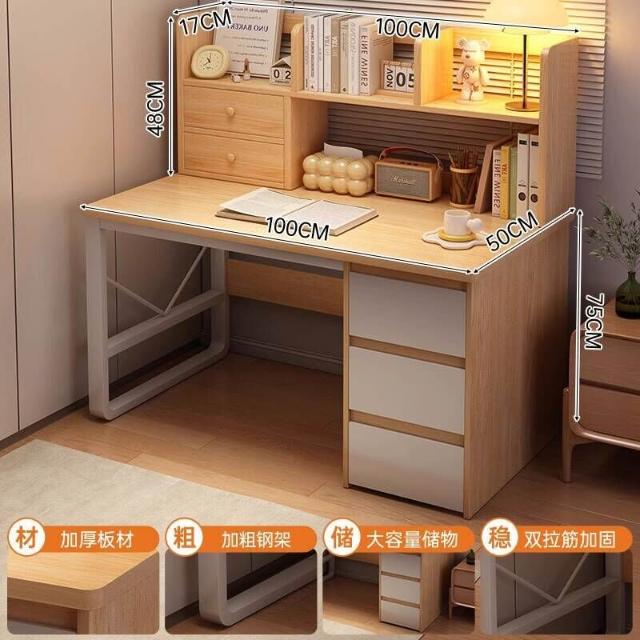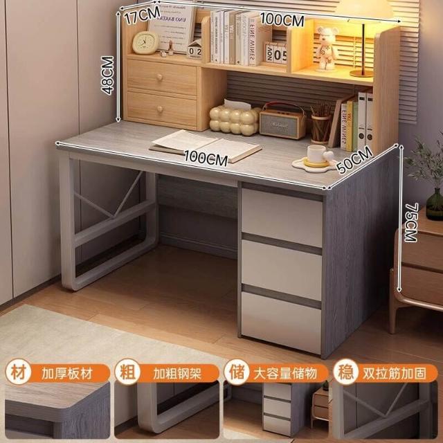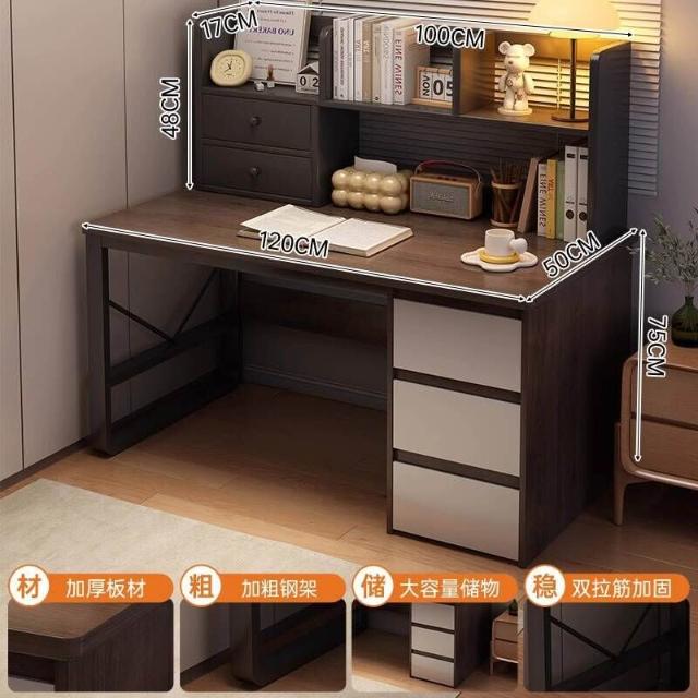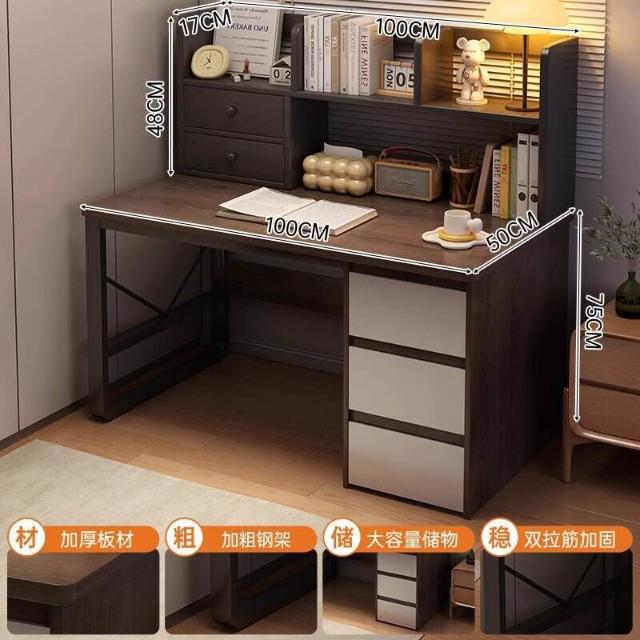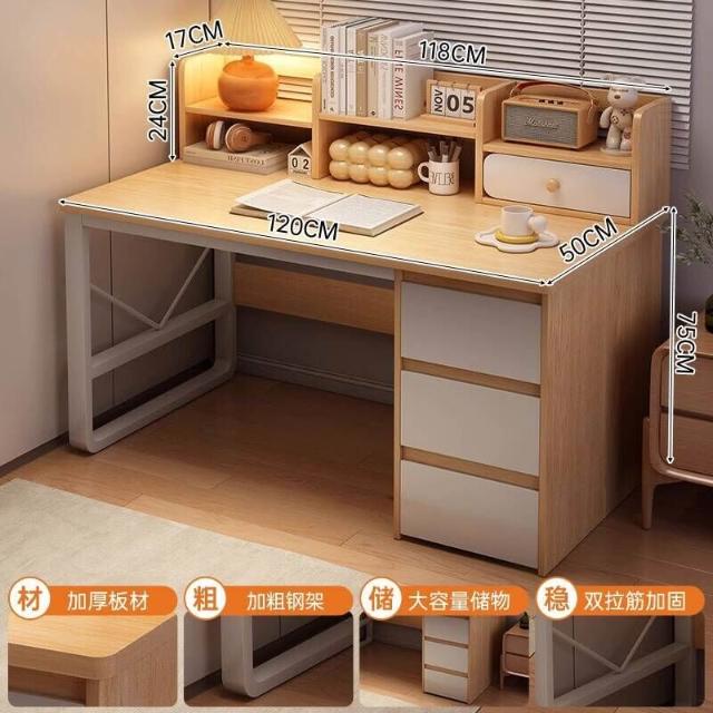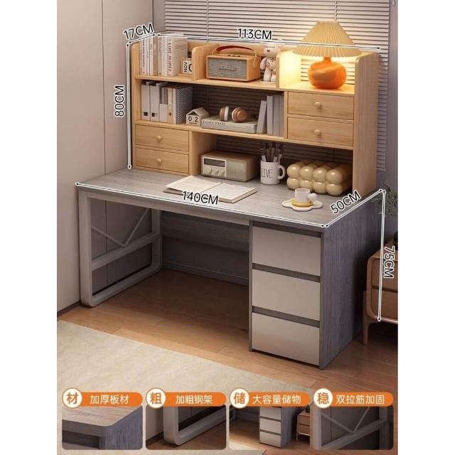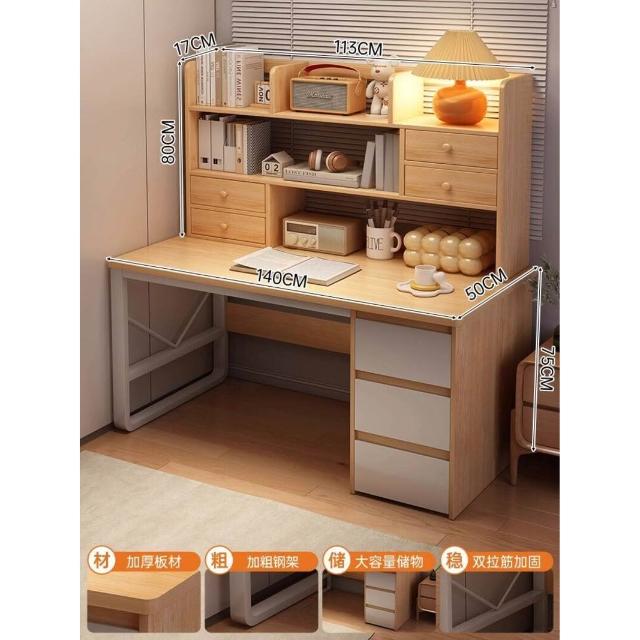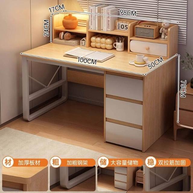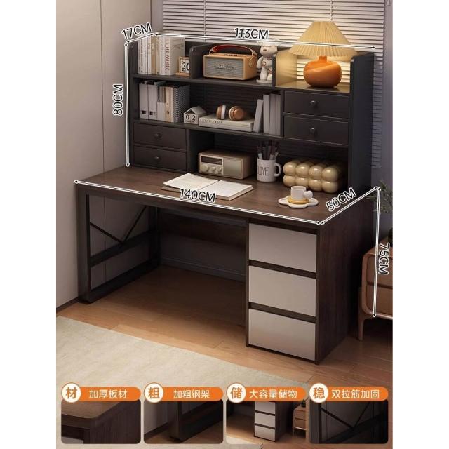 🍭 書桌書架一體桌書房學生學習寫字桌家用帶抽屜電腦桌臥室靠墻桌子