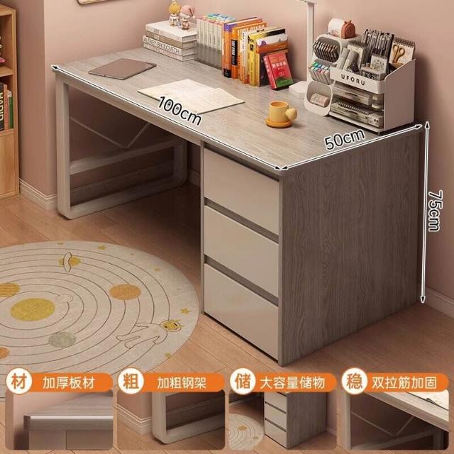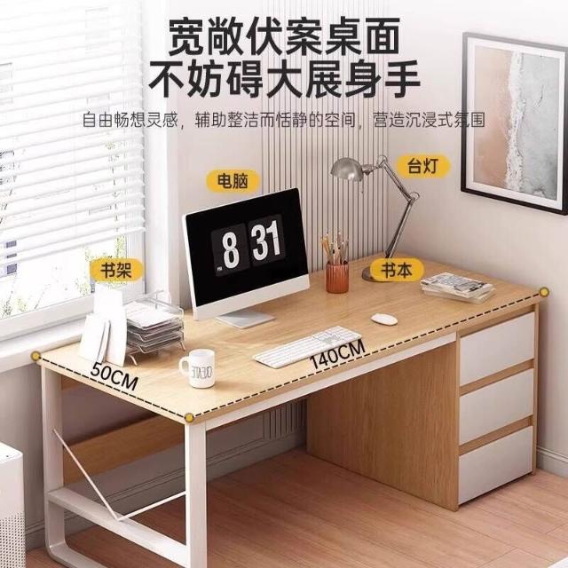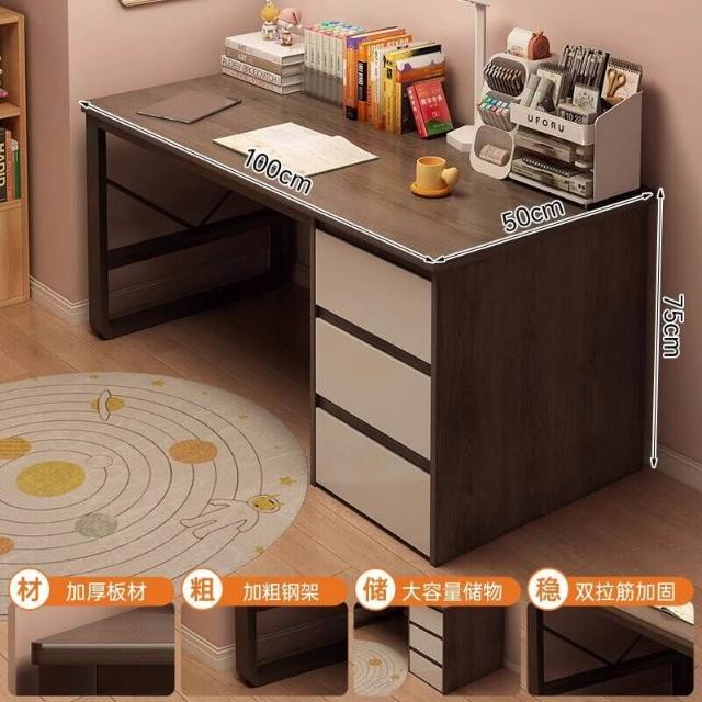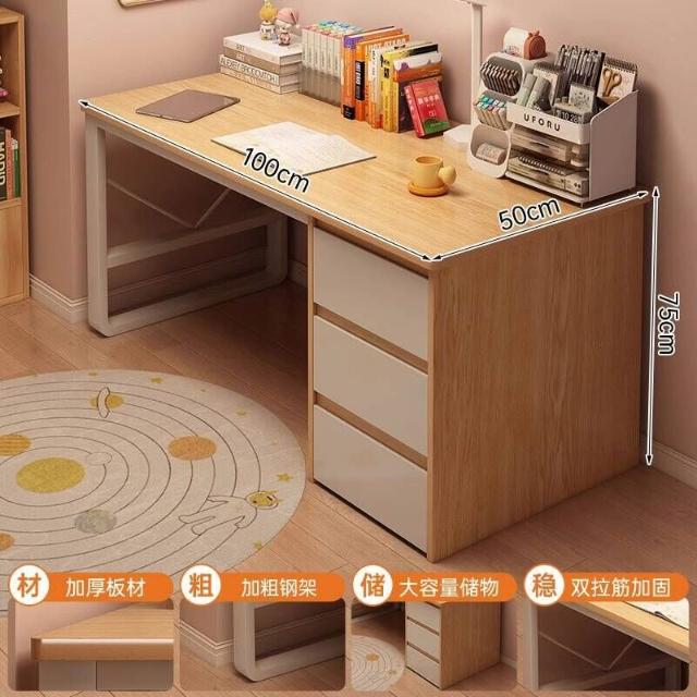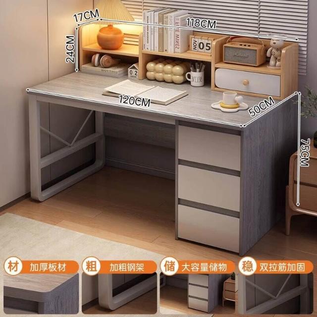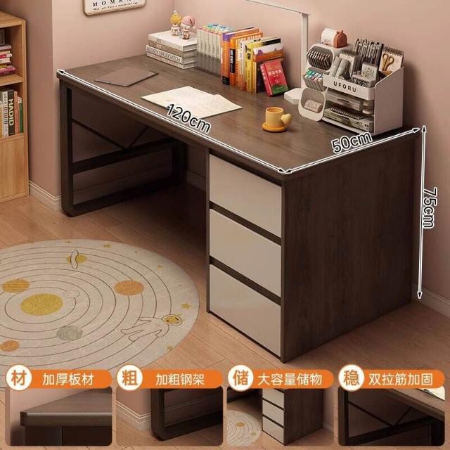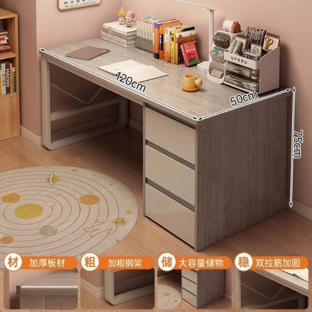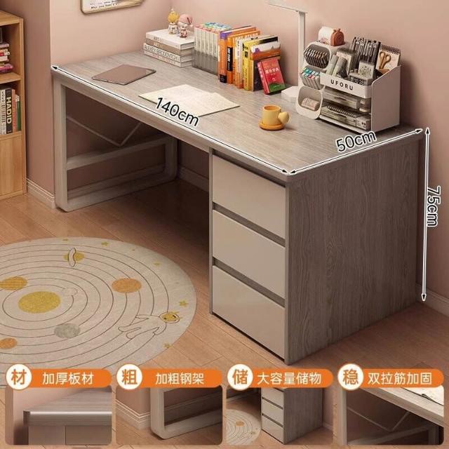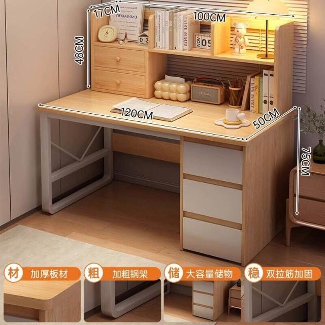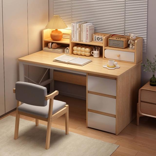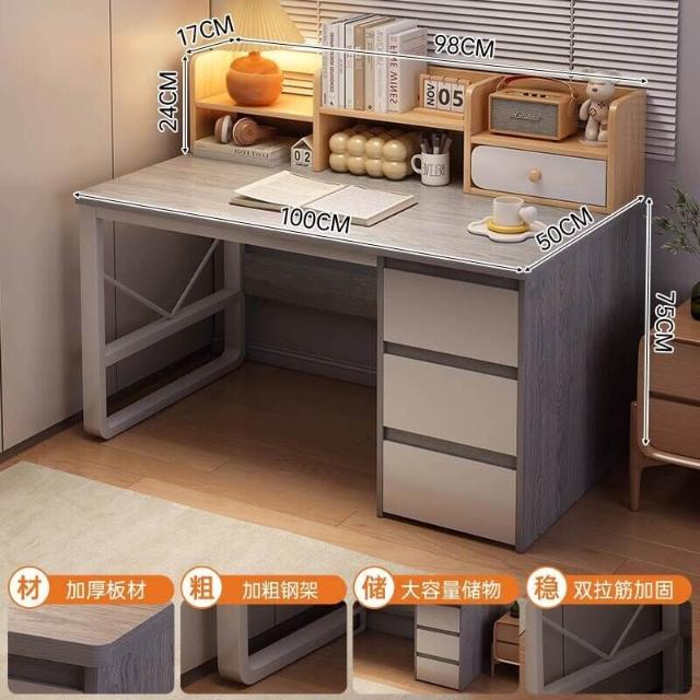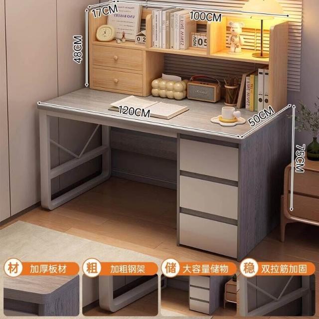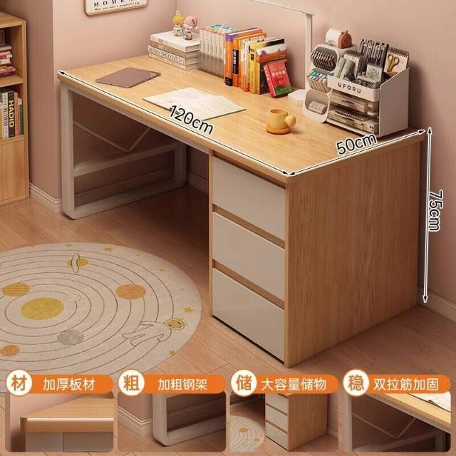 🍭 書桌書架一體桌書房學生學習寫字桌家用帶抽屜電腦桌臥室靠墻桌子
