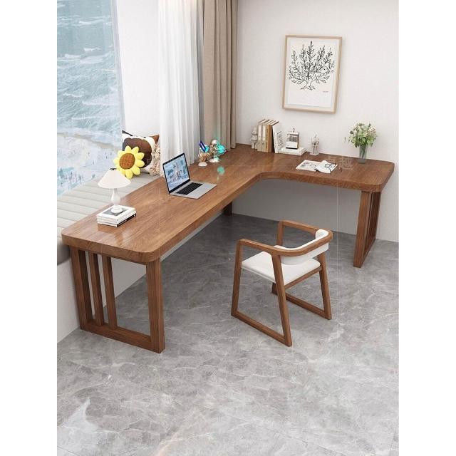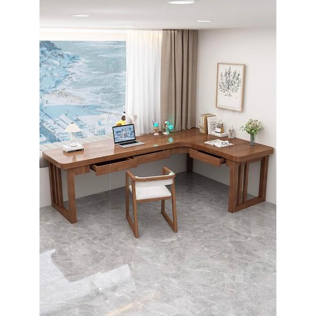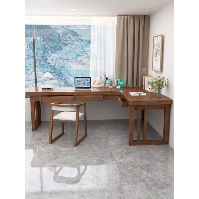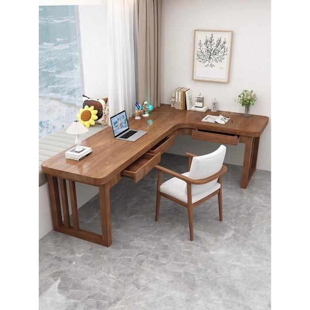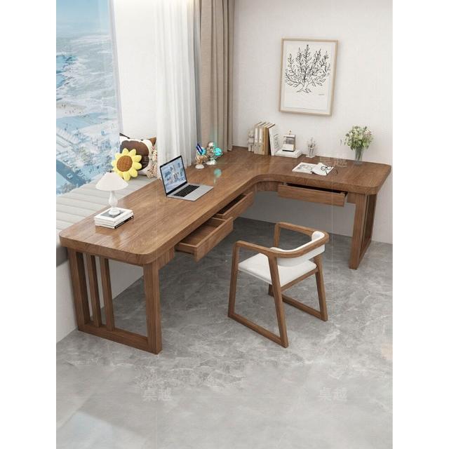 🍭 實木轉角電腦桌帶抽屜家用簡約現代書桌L形拐角辦公桌新款工作臺