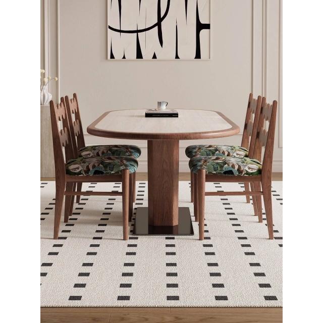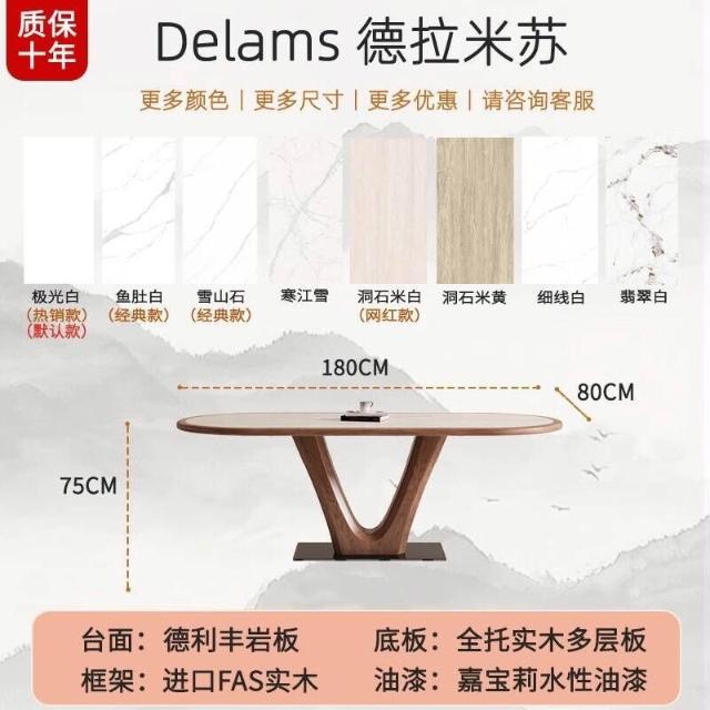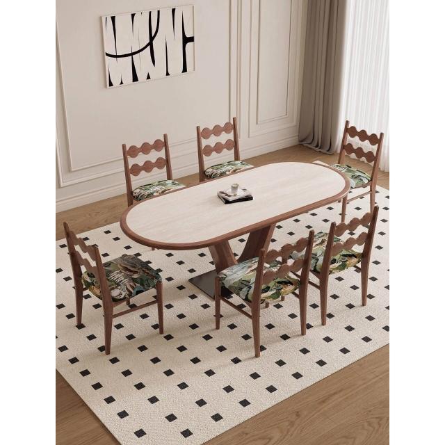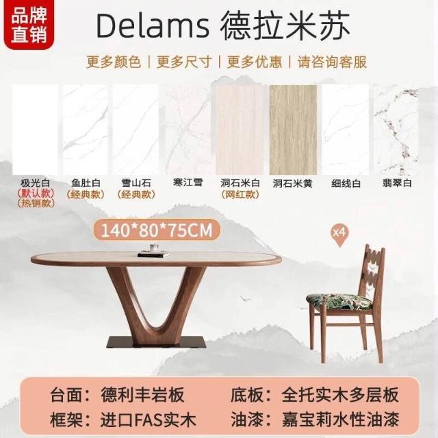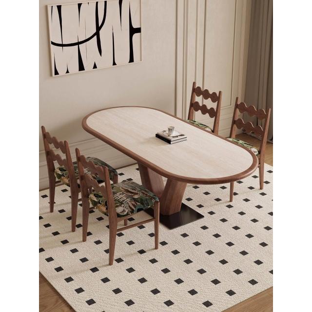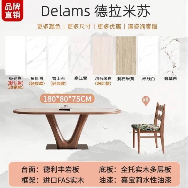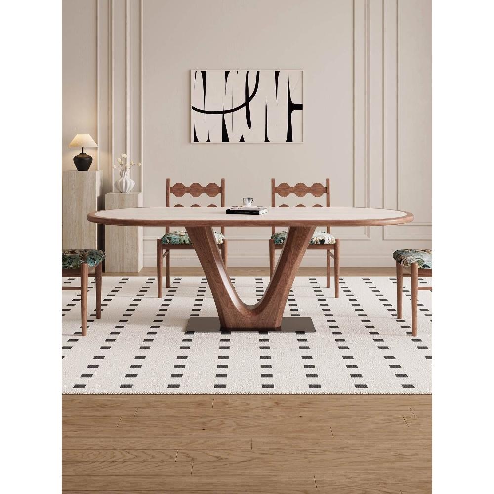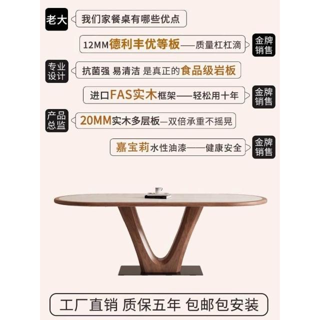 🌈 德利豐實木巖板餐桌家用橢圓形內嵌設計師法式奶油中古風高端飯桌