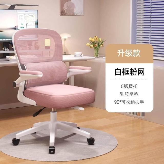 🎉 粉色人體工學椅子女性久坐舒適家用辦公椅午睡兩用宿舍座椅電腦椅