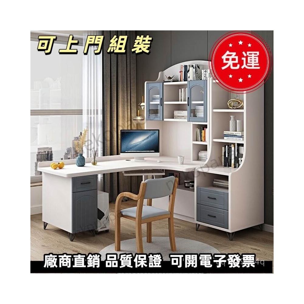 可上門組裝 免運如煜 電腦桌臺式書桌學習桌書桌書櫃組閤轉角實木書架一體組閤-J ZERW