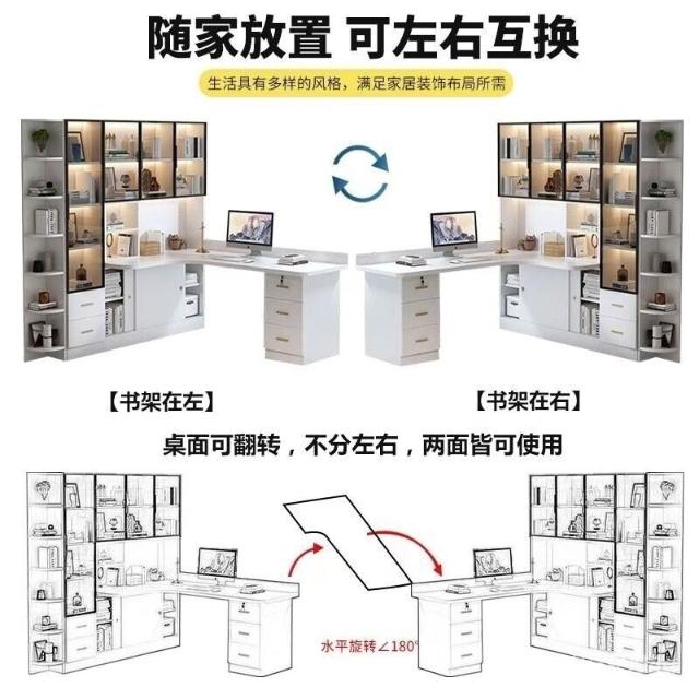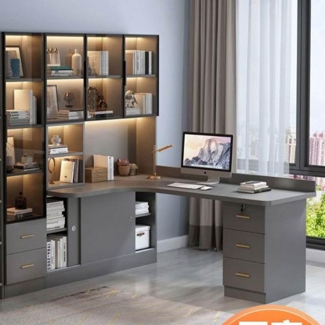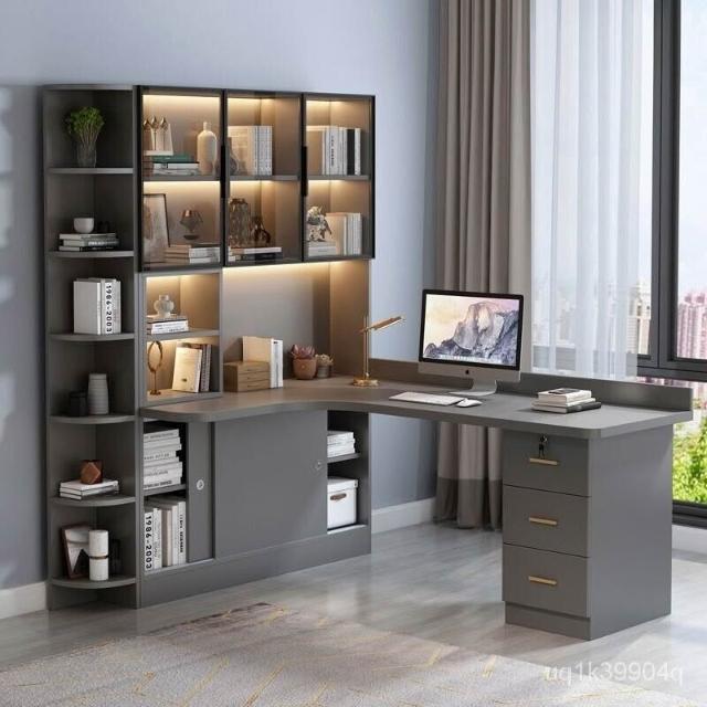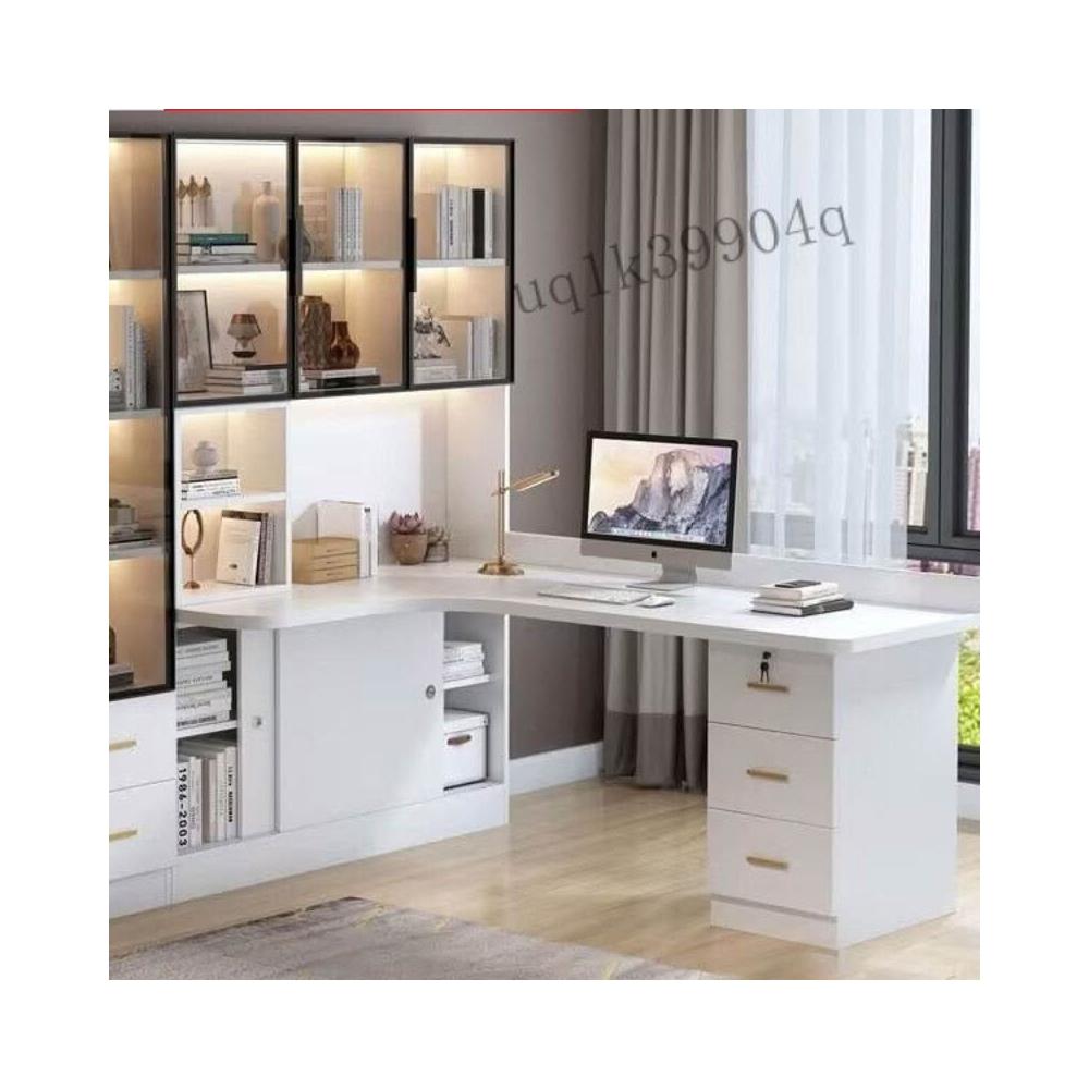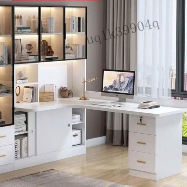 可付費組裝 免運實木轉角臥室書桌書櫃書架組閤一體輕奢辦公電腦桌傢用寫字學習桌 JOGW