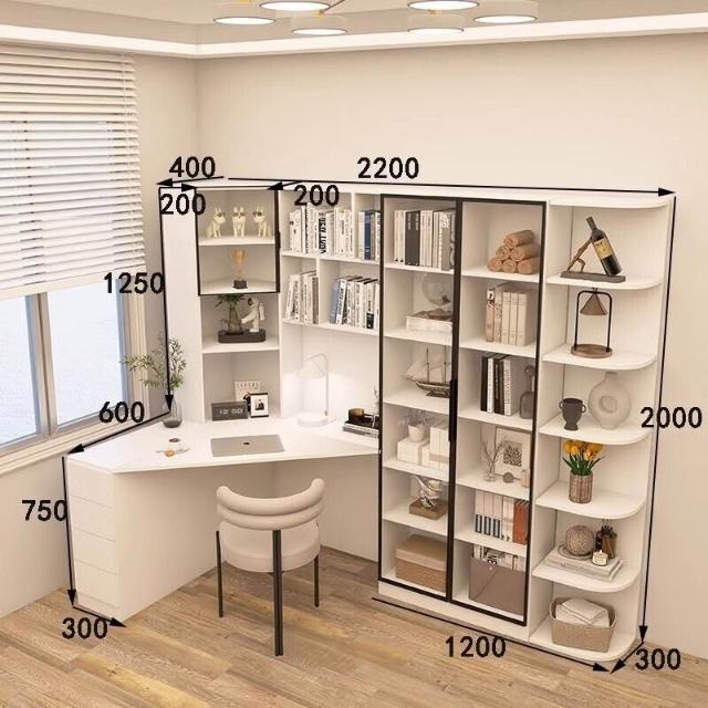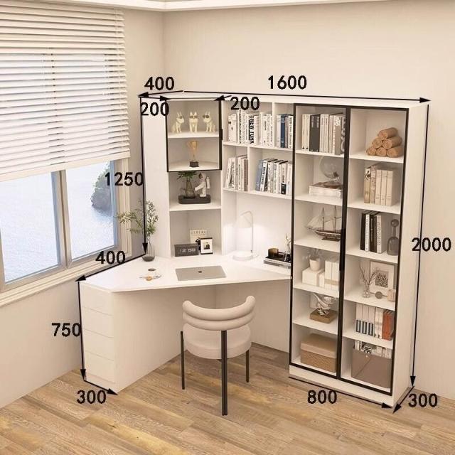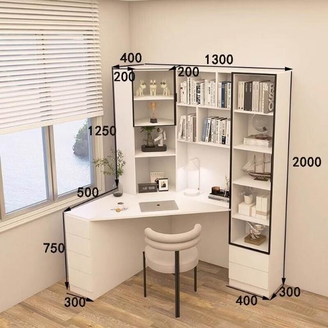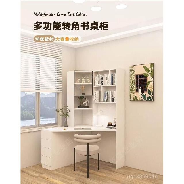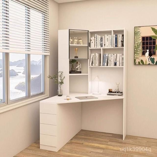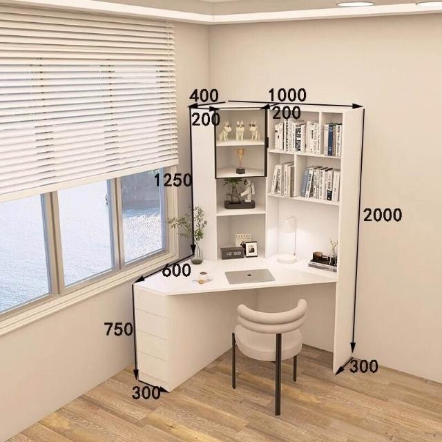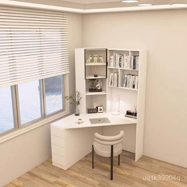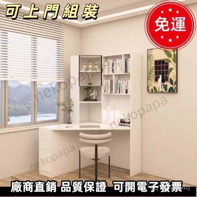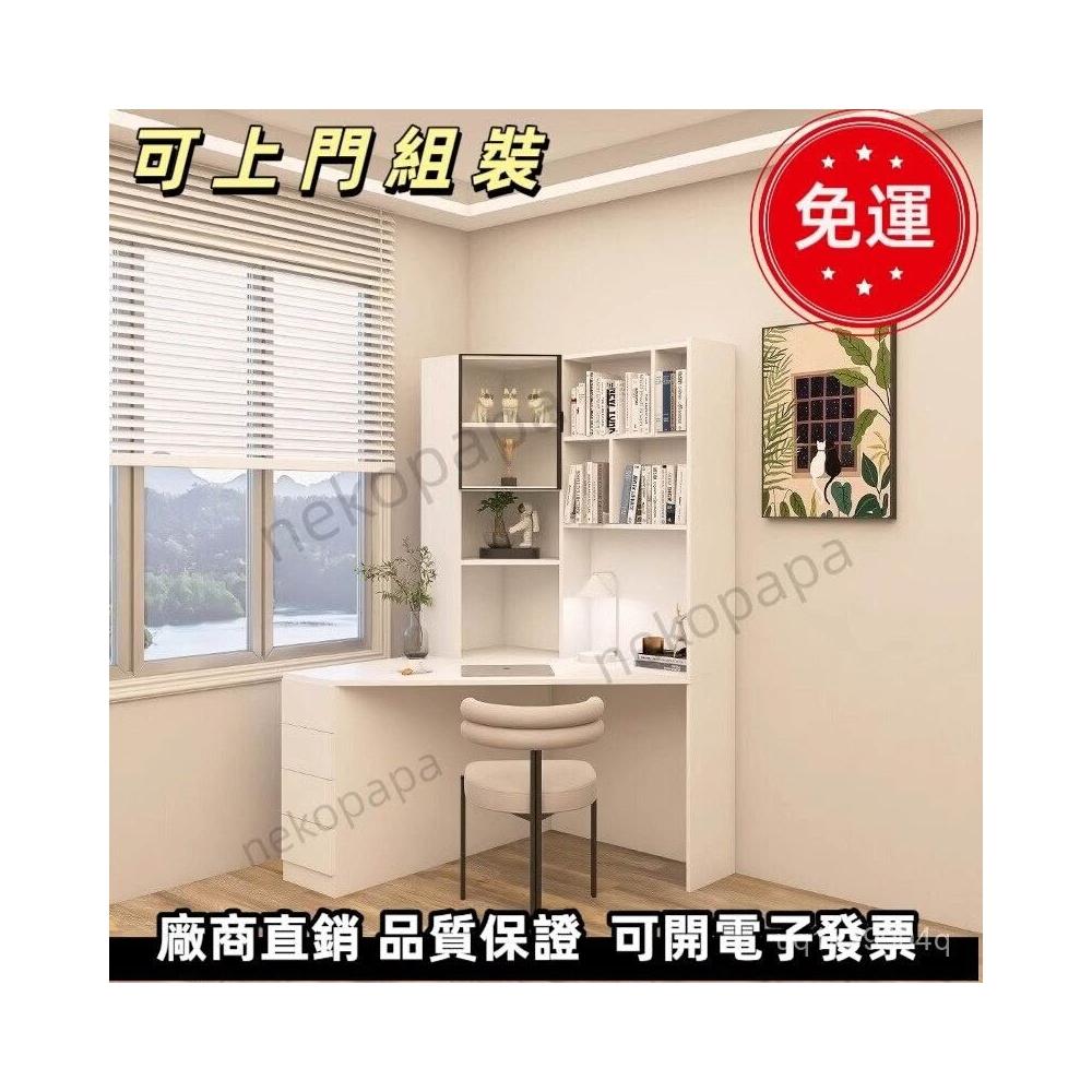 可上門組裝 免運家用電腦桌書桌化裝桌梳妝臺一體轉角學生臥室墻三角形書桌帶書架 6TZL
