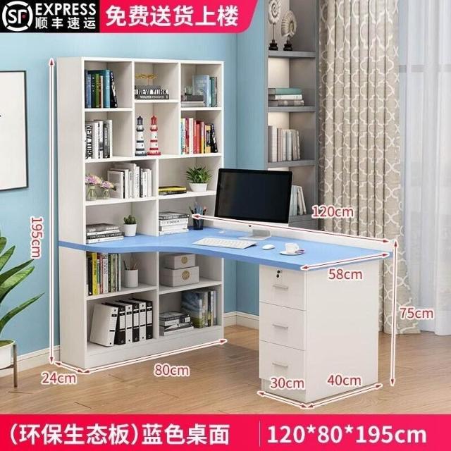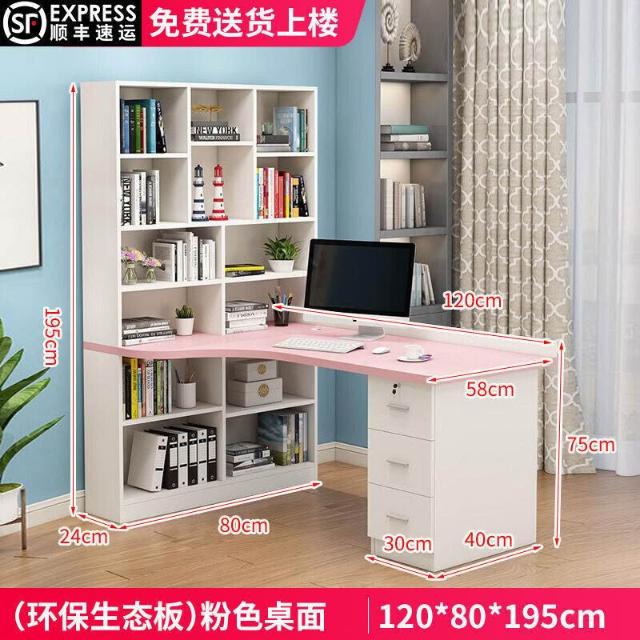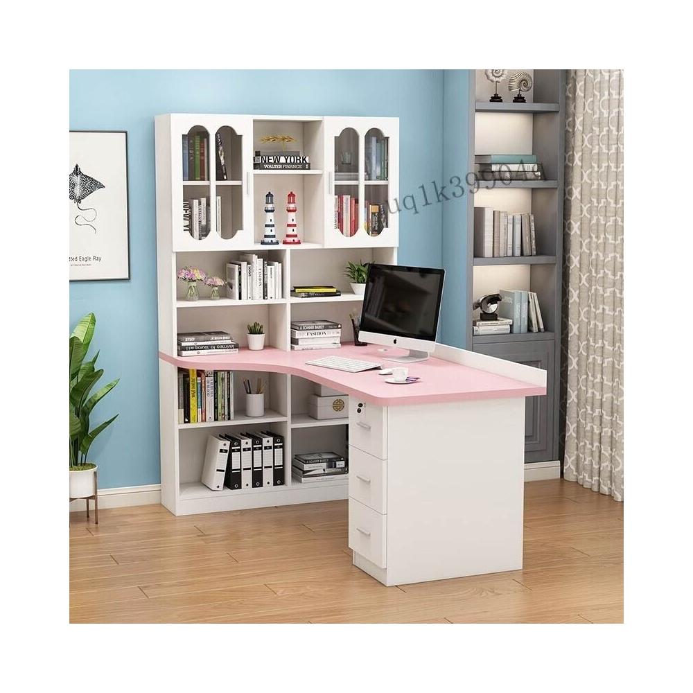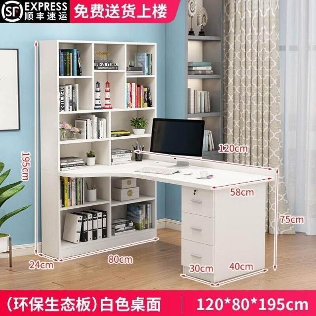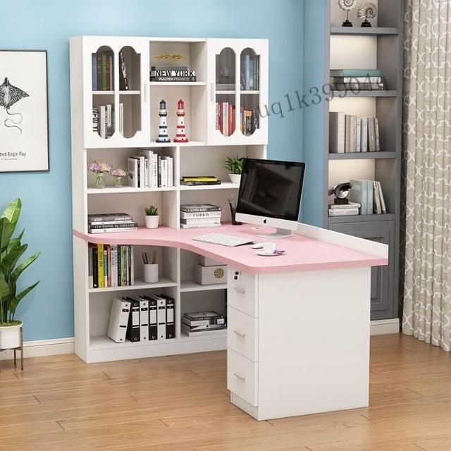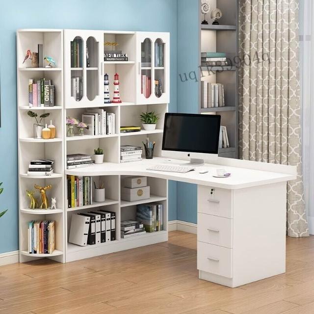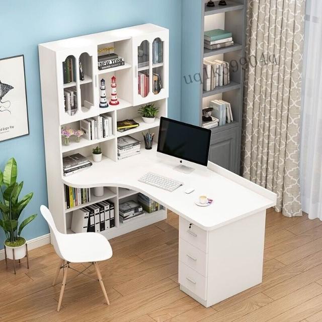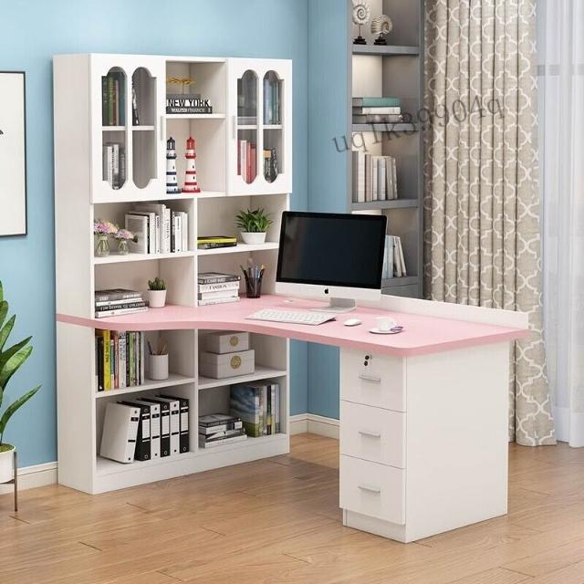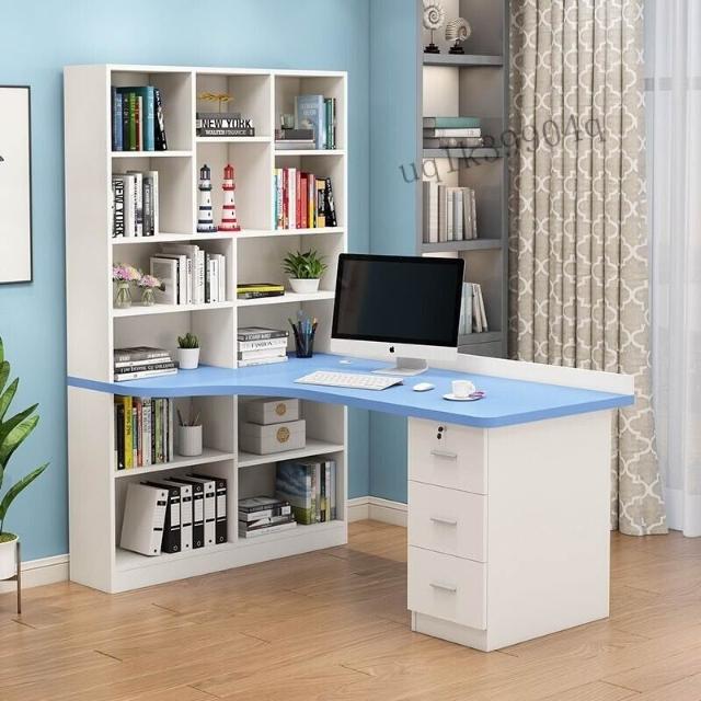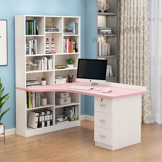 限時特惠 免稅實木轉角電腦桌書桌書架組閤臺式寫字桌帶書櫃傢用兒童臥室學習桌 VMQ1