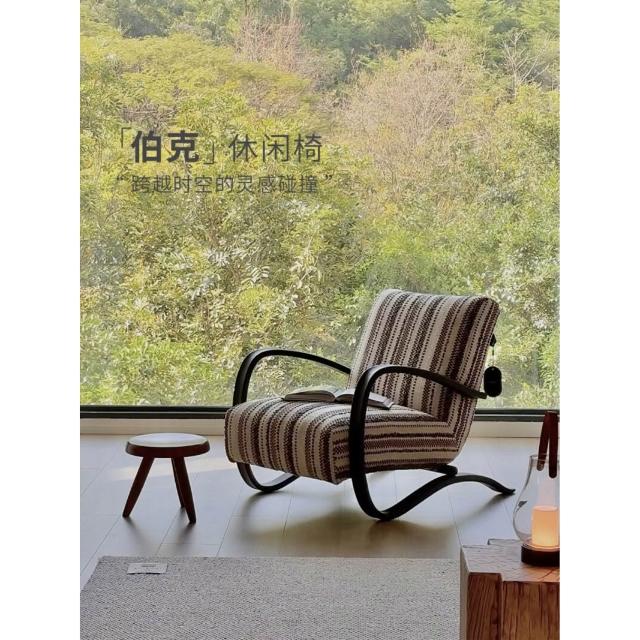 休閑椅客廳法式陽臺臥室沙發椅子中古風設計師單椅#